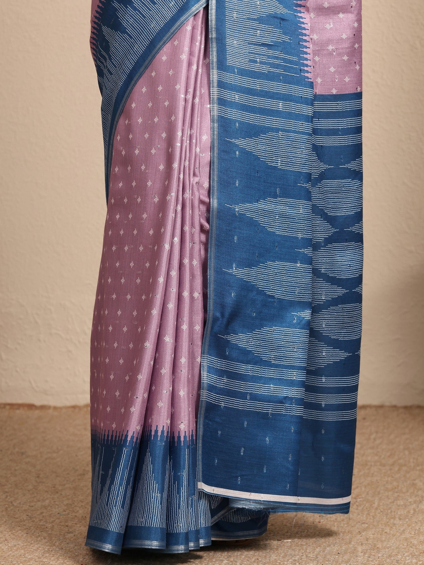 Lavender Ikat Woven Design Silk Blend Saree With Unstitched Blouse Pie