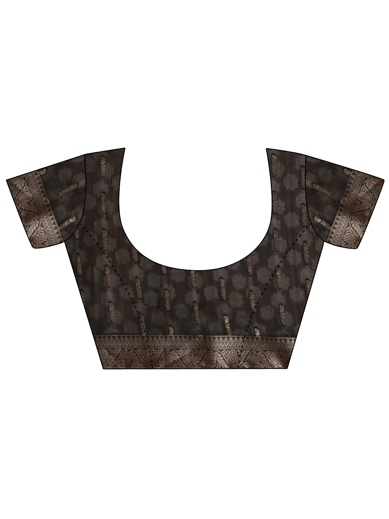 Black Printed Silk Blend Saree With Unstitched Blouse Piece