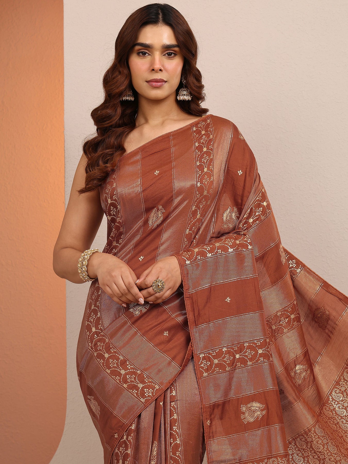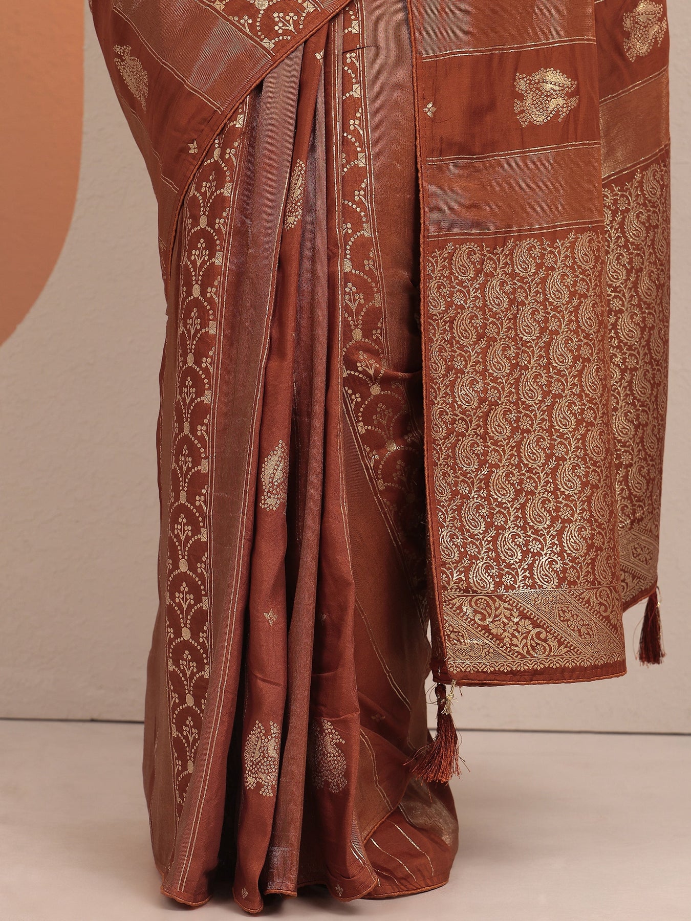 Rust Woven Design Banarsi Silk Blend Saree With Unstitched Blouse Piec