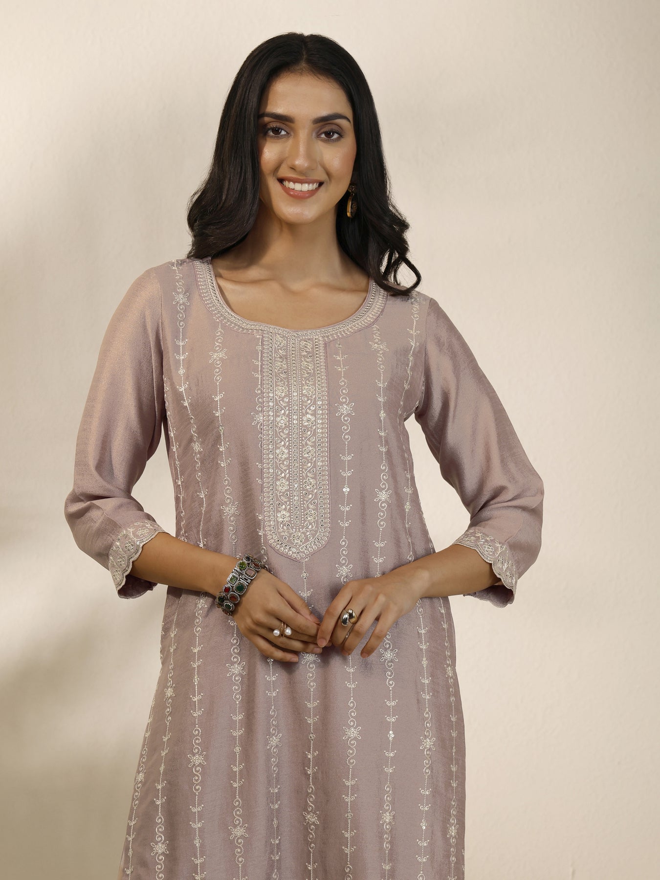 Mauve Embroidered Silk Blend Straight Suit Set With Dupatta