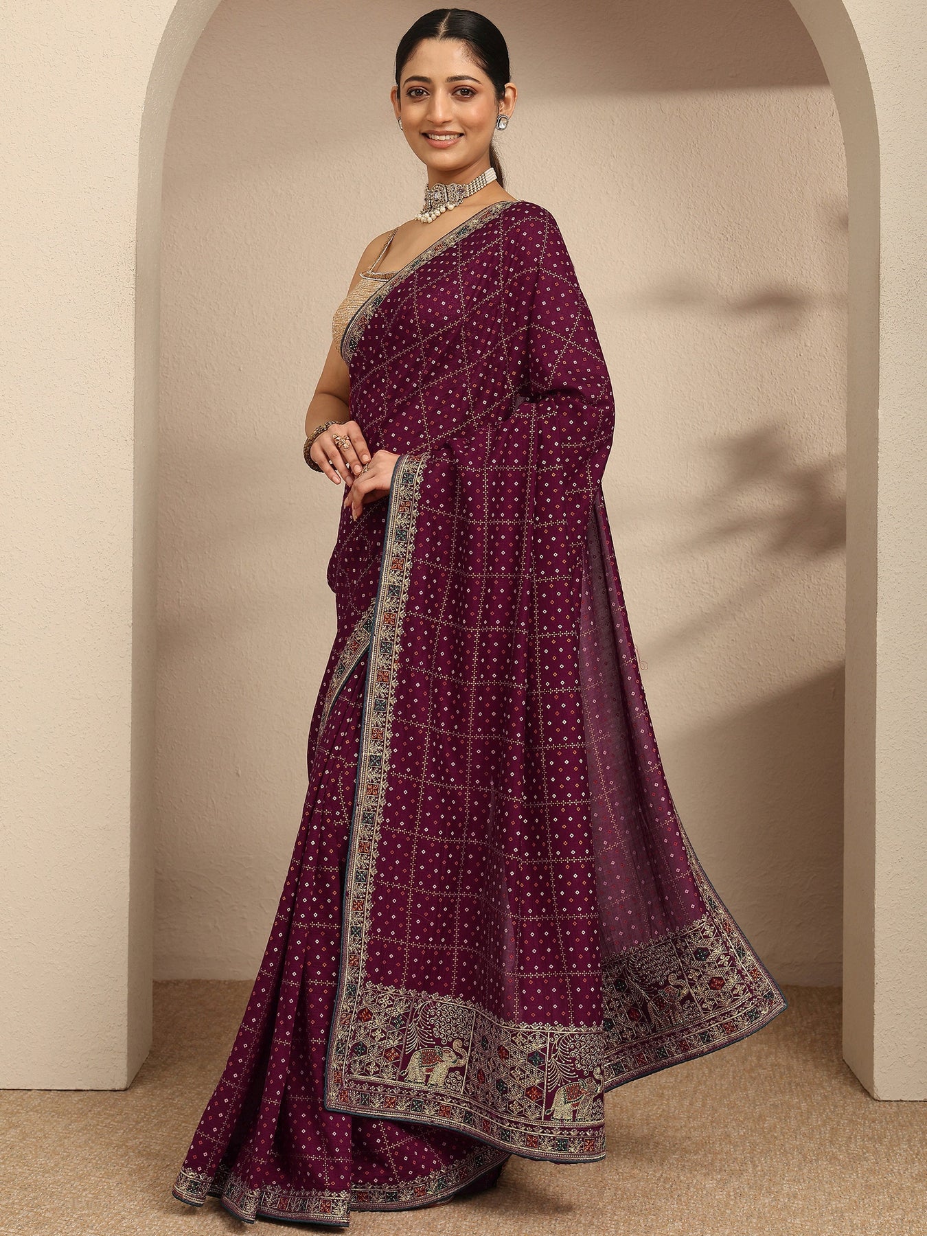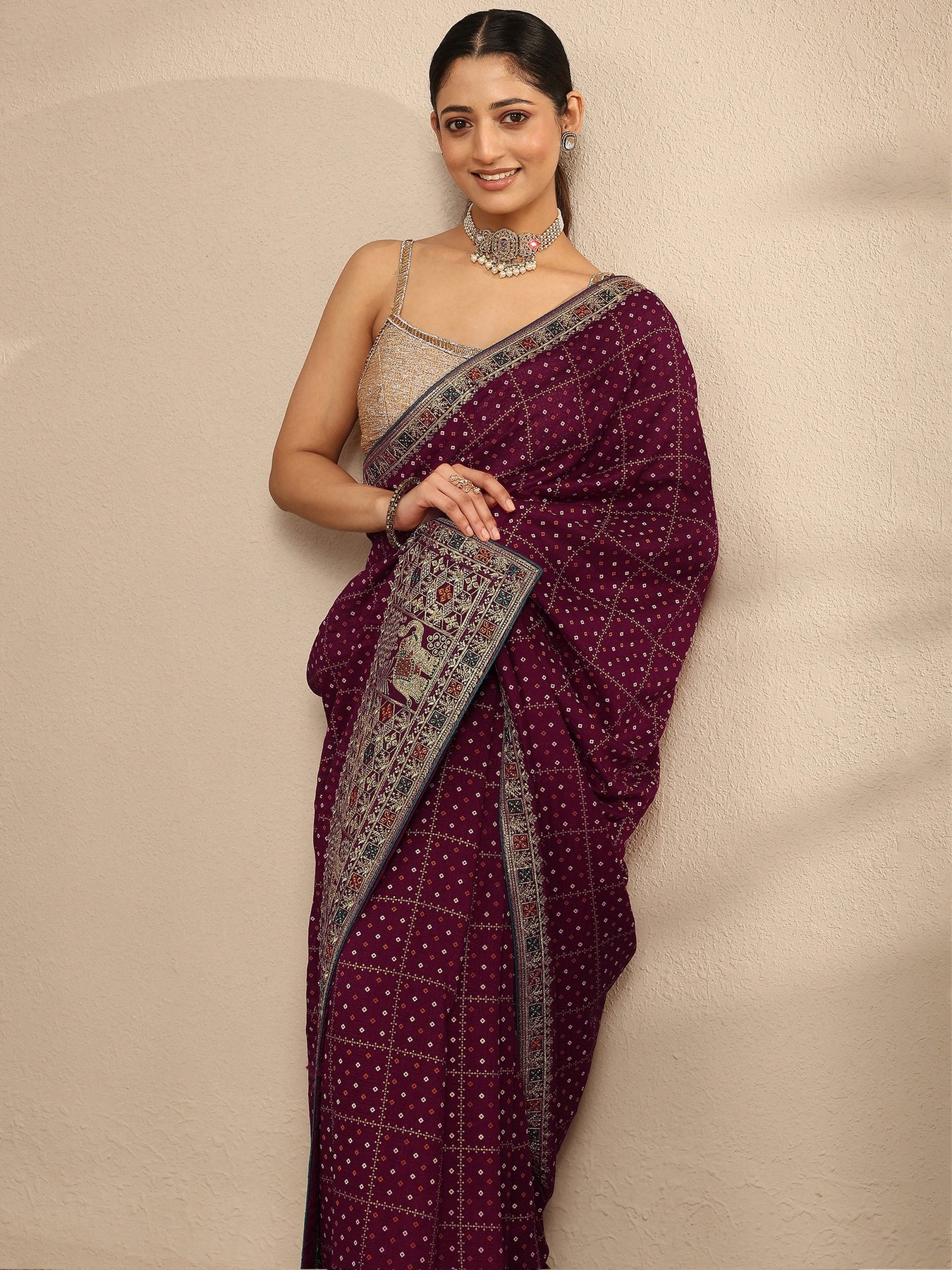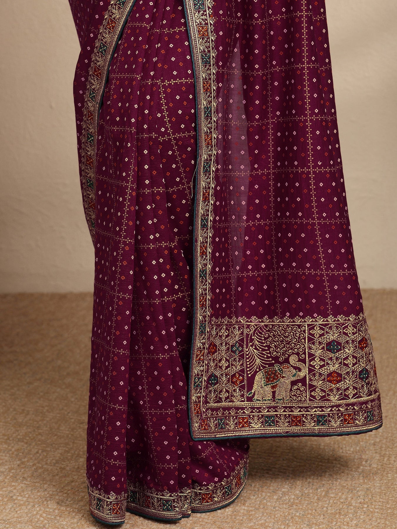 Maroon Bandhani Printed Silk Blend Saree With Unstitched Blouse Piece