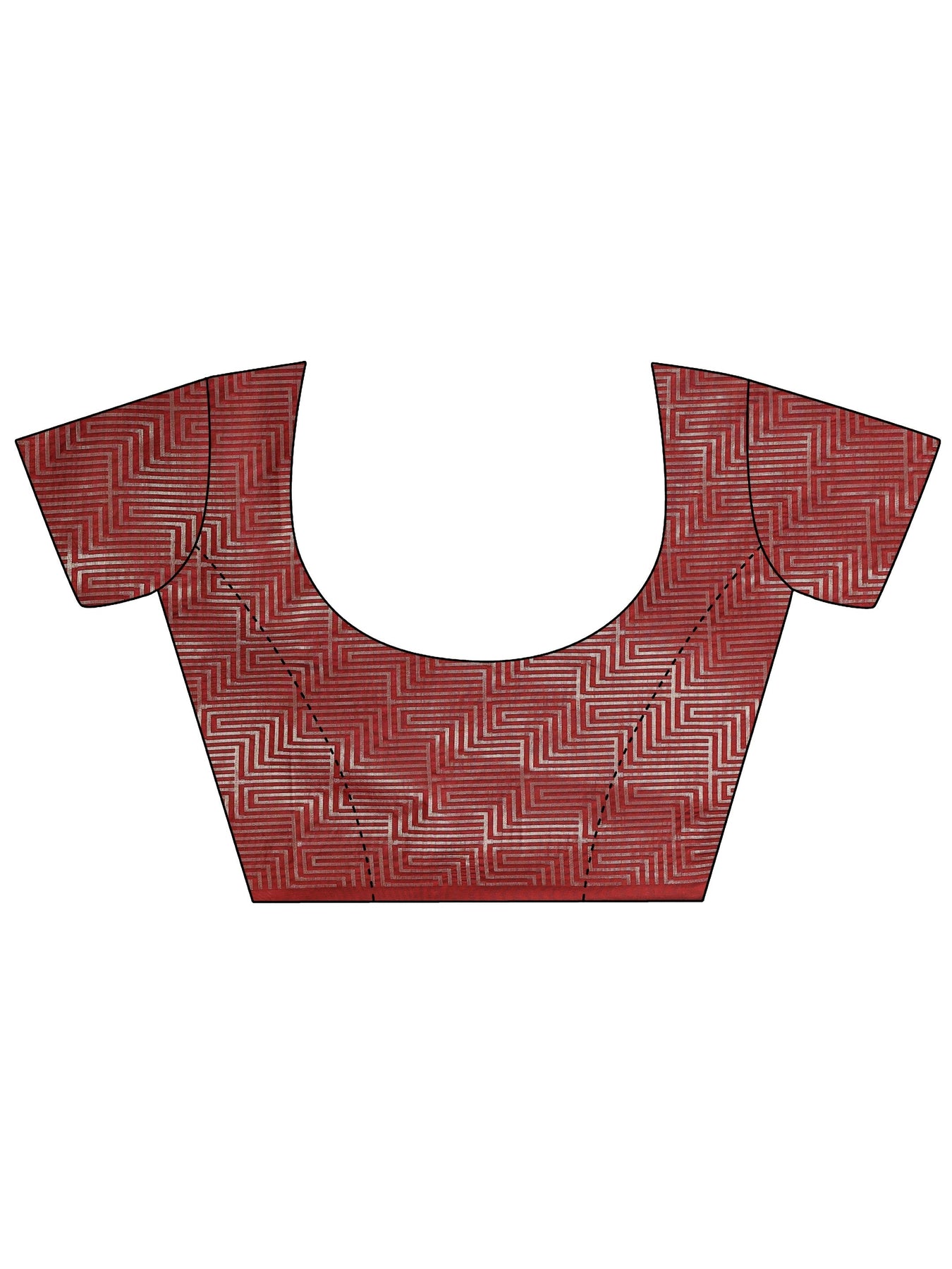 Our maroon printed silk blend saree features captivating geometric print. Complemented with a Unstitched blouse. This charming saree is perfect for festive occasions.