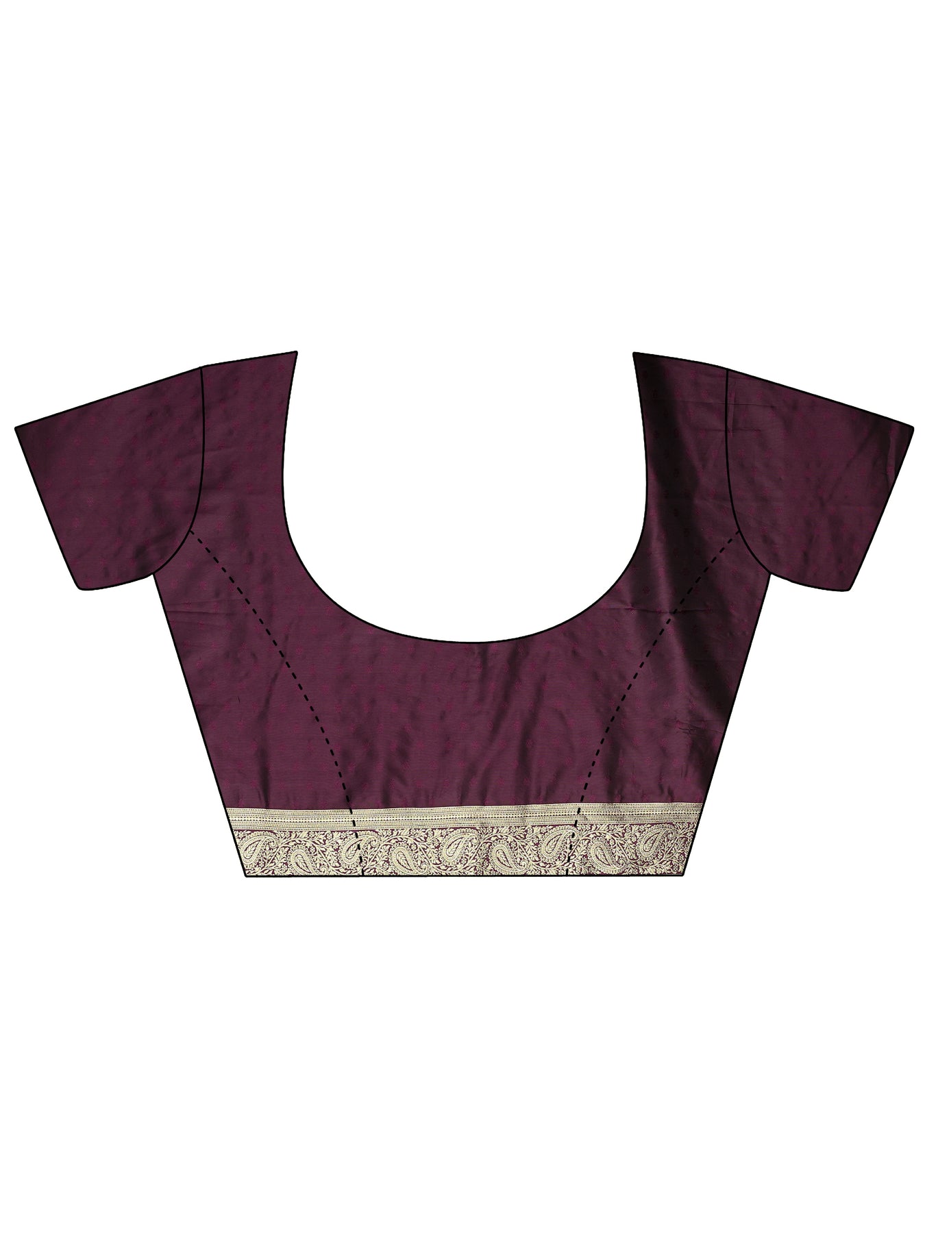 Our Burgundy Woven Design Silk Blend Saree Features Captivating Chevron. Complemented With An Unstitched Blouse Piece. This Charming Saree Is Perfect For Festive Occasions.