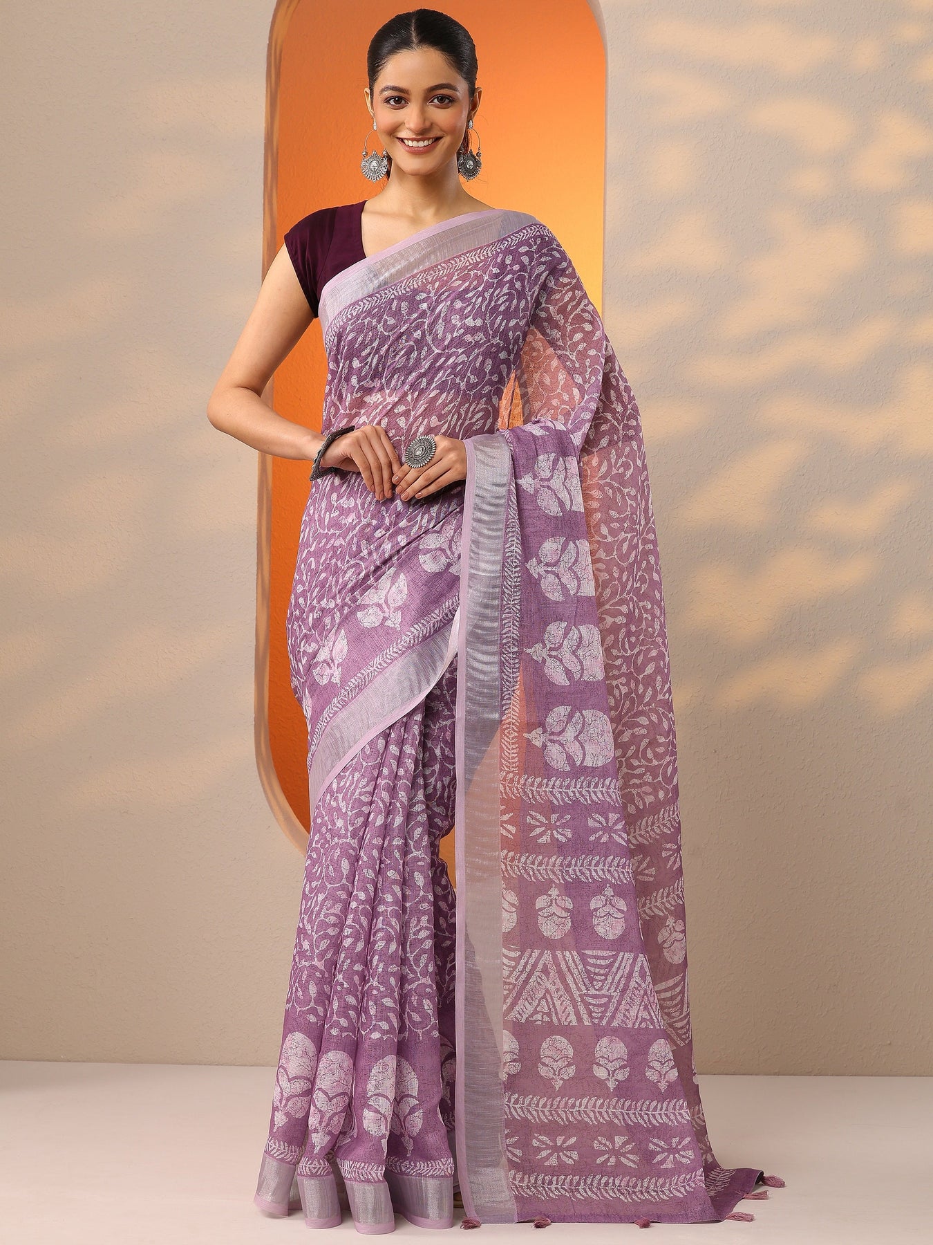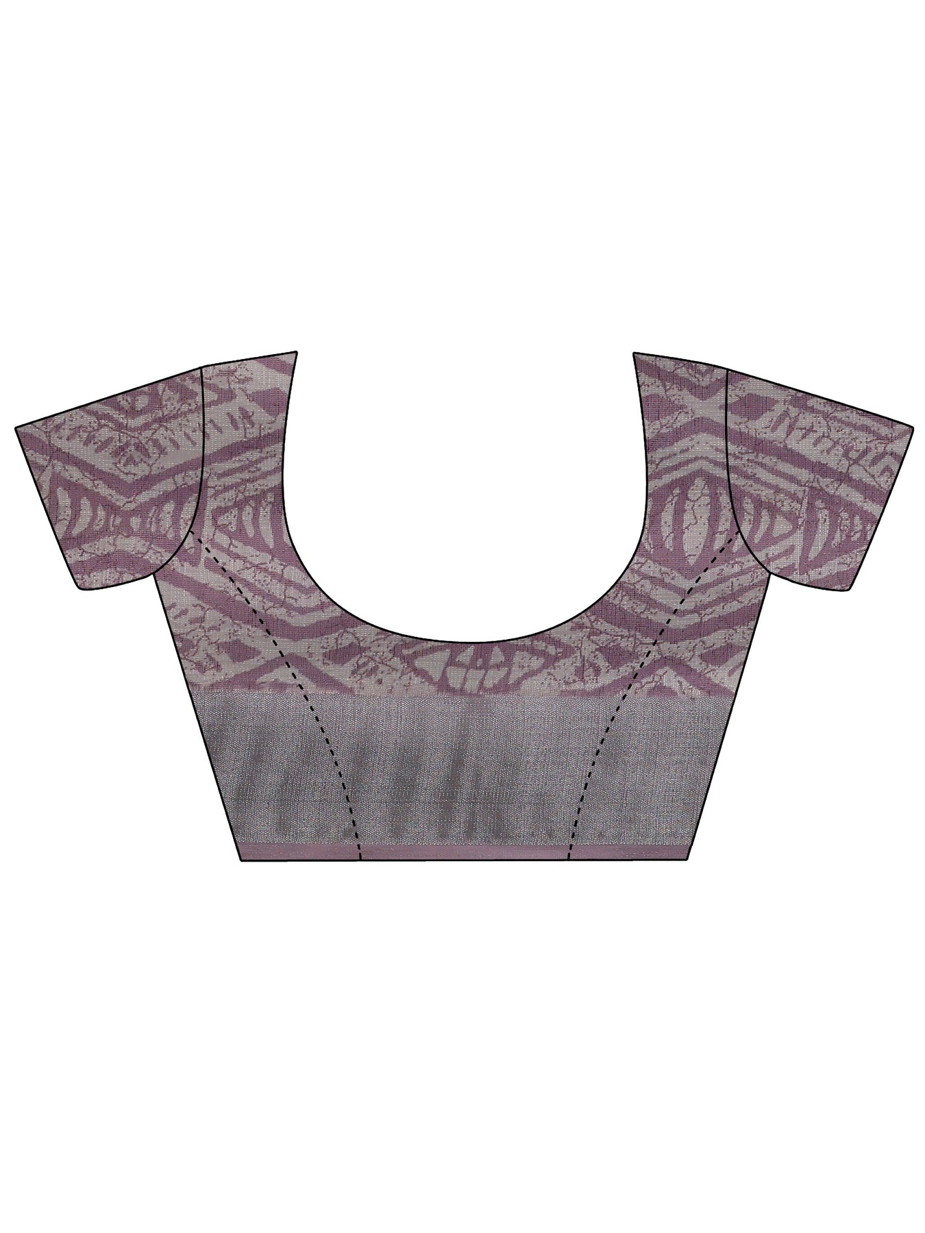Mauve Jamdani Printed Cotton Blend Saree With Unstitched Blouse Piece