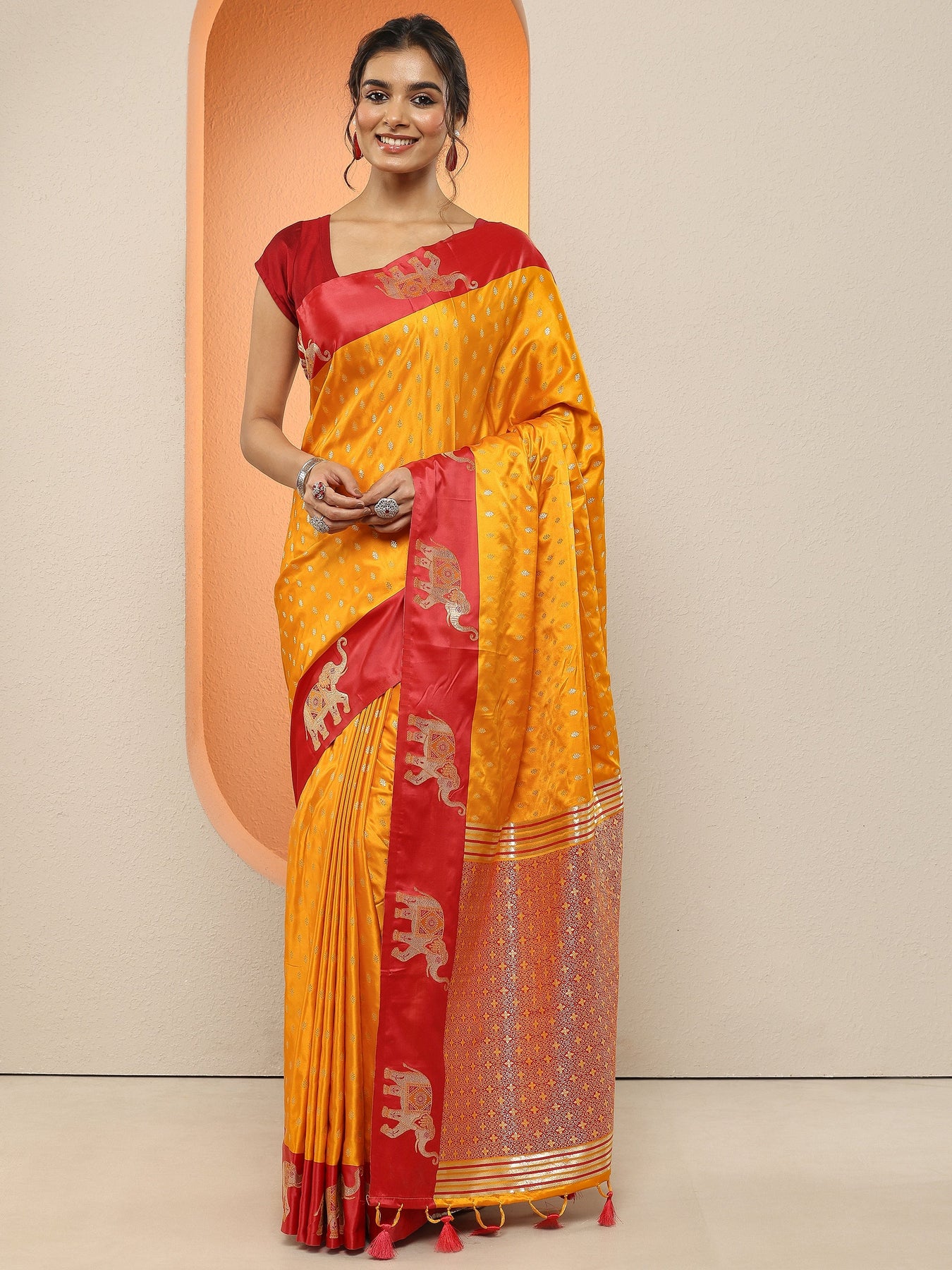 Mustard  Woven Design Silk Blend Sarees With Unstitched Blouse Piece