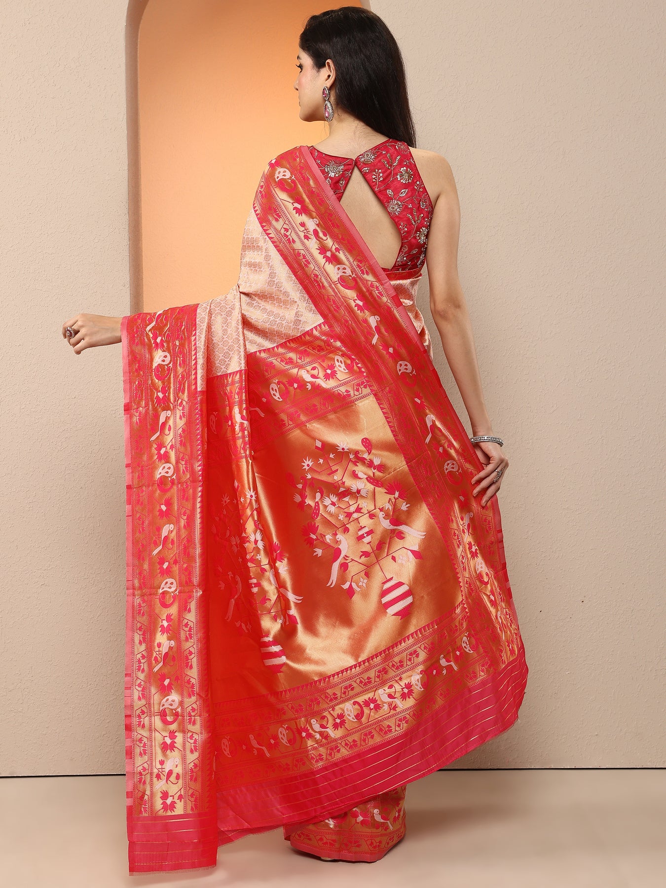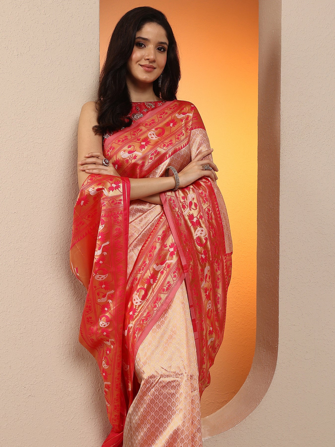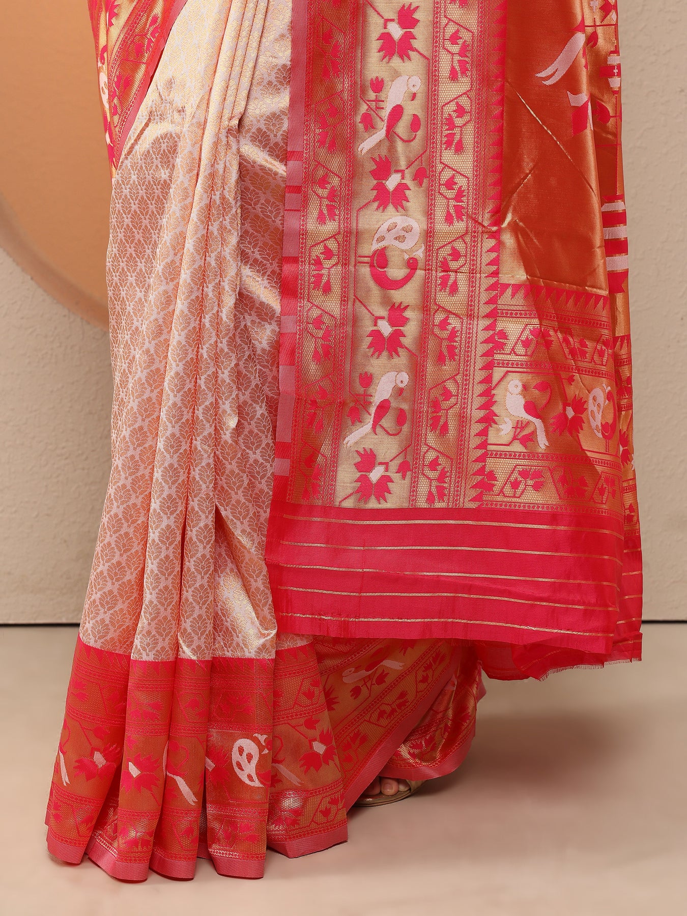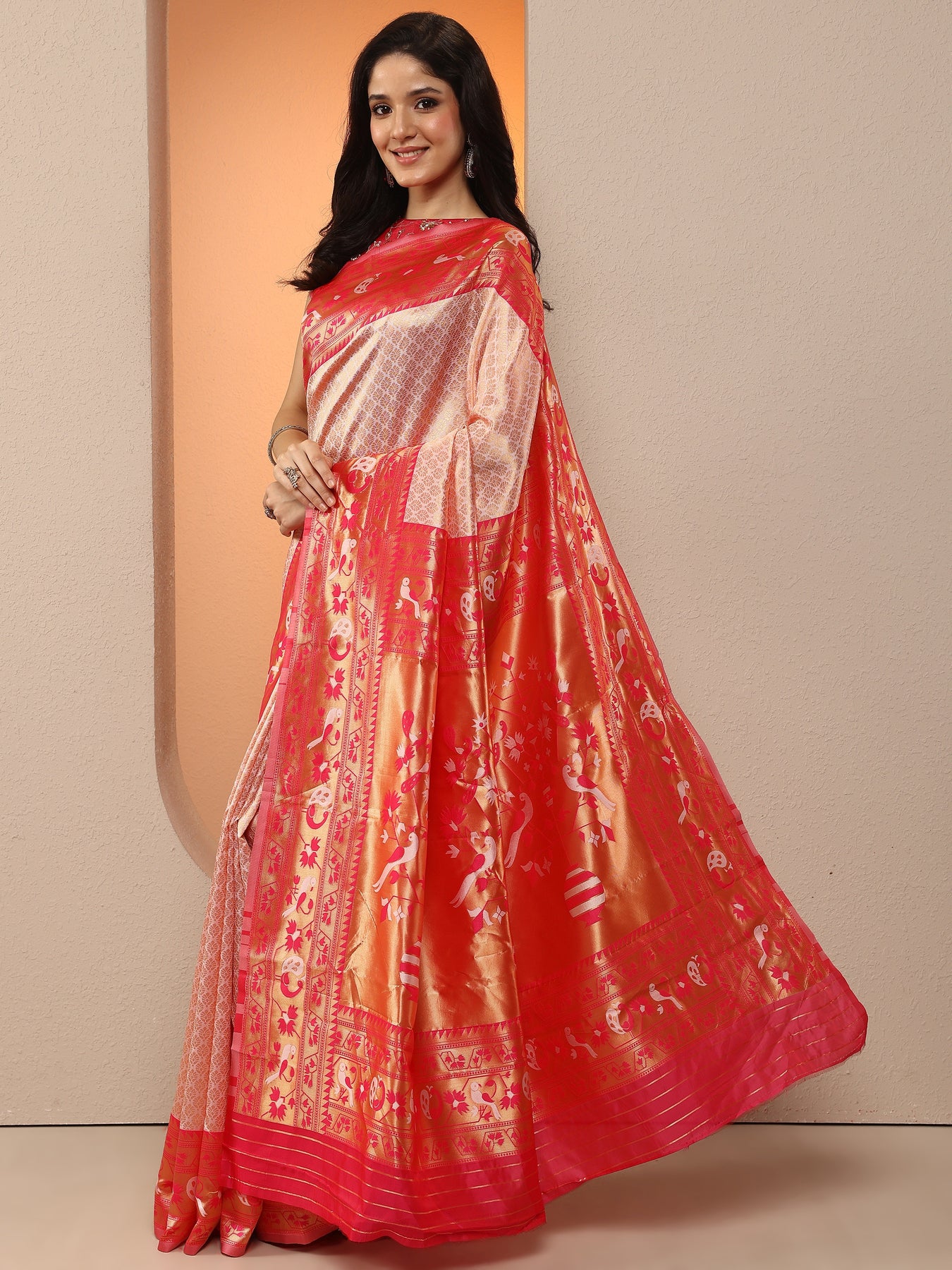 Peach Woven Design Silk Blend Saree With Unstitched Blouse Piece