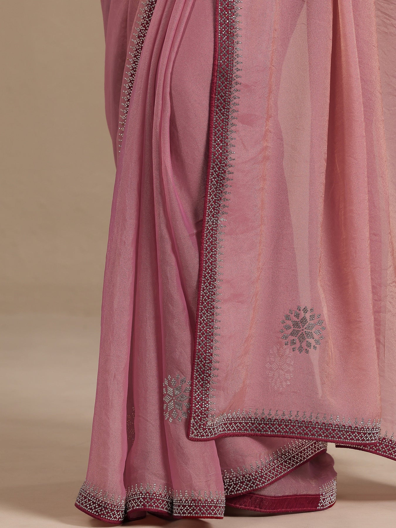 Pink Embellished Organza Saree With Unstitched Blouse Piece