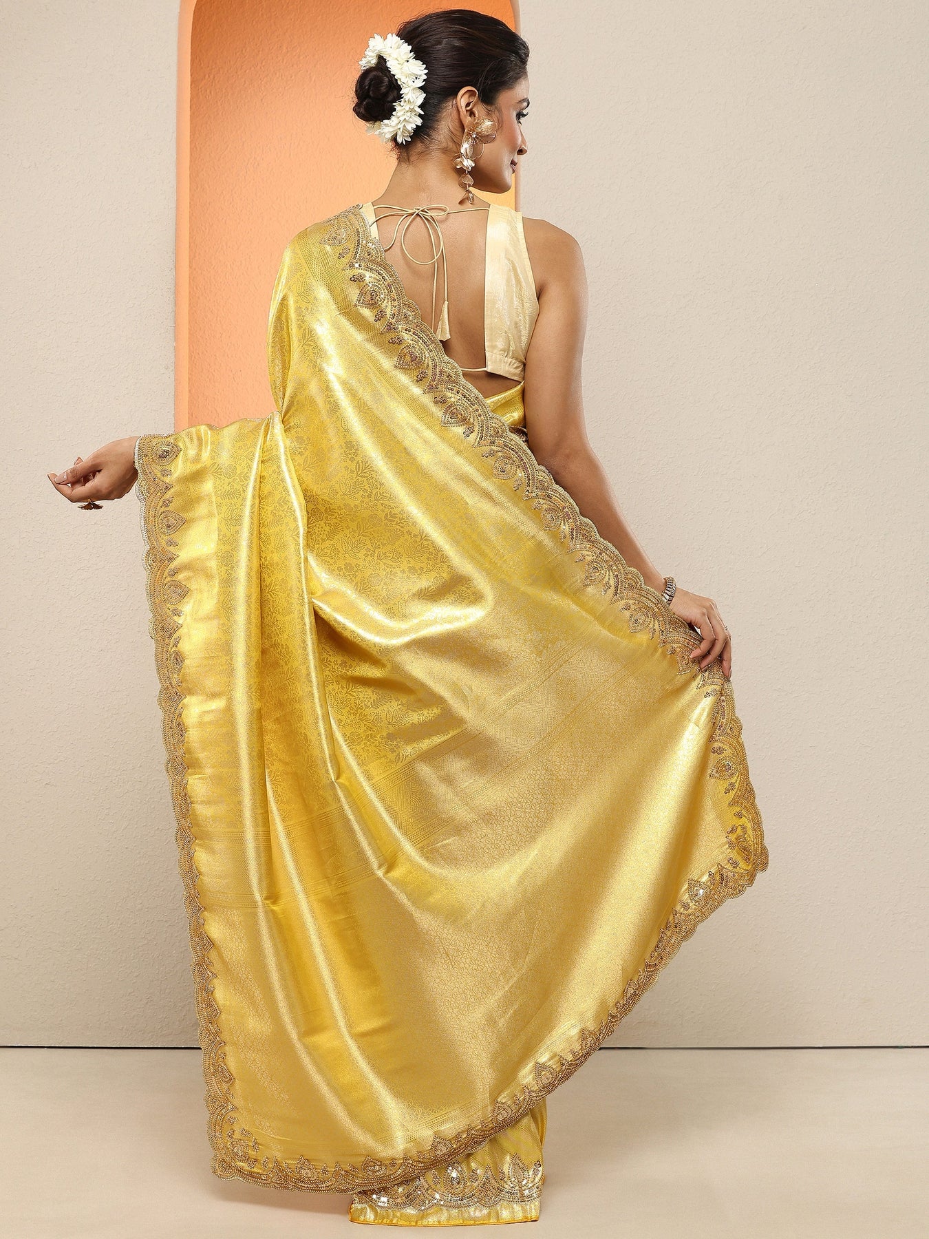 Mustard Woven Design Silk Blend Sarees With Unstitched Blouse Piece