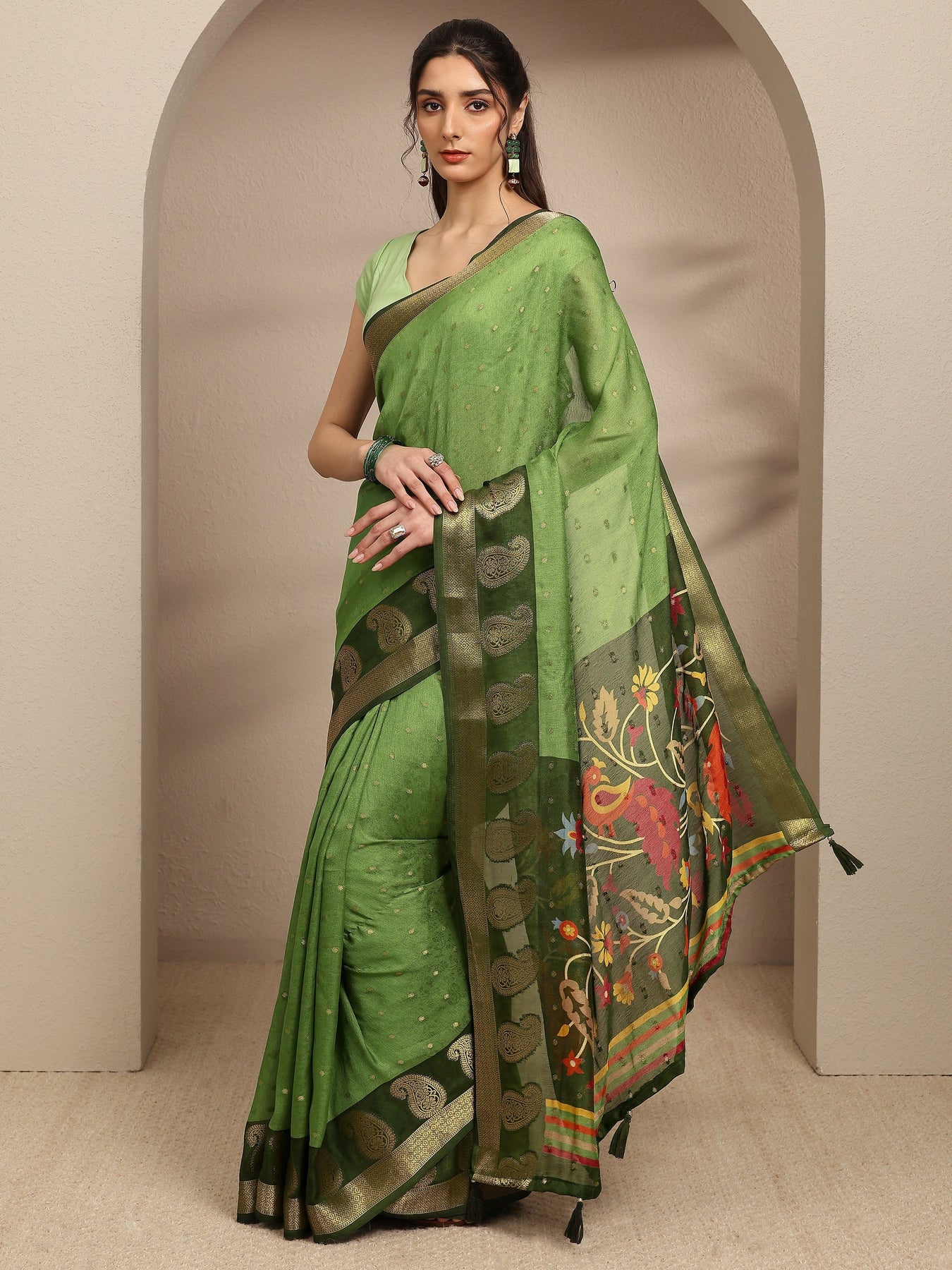 Green Paisley Woven Design Silk Blend Saree With Unstitched Blouse Pie