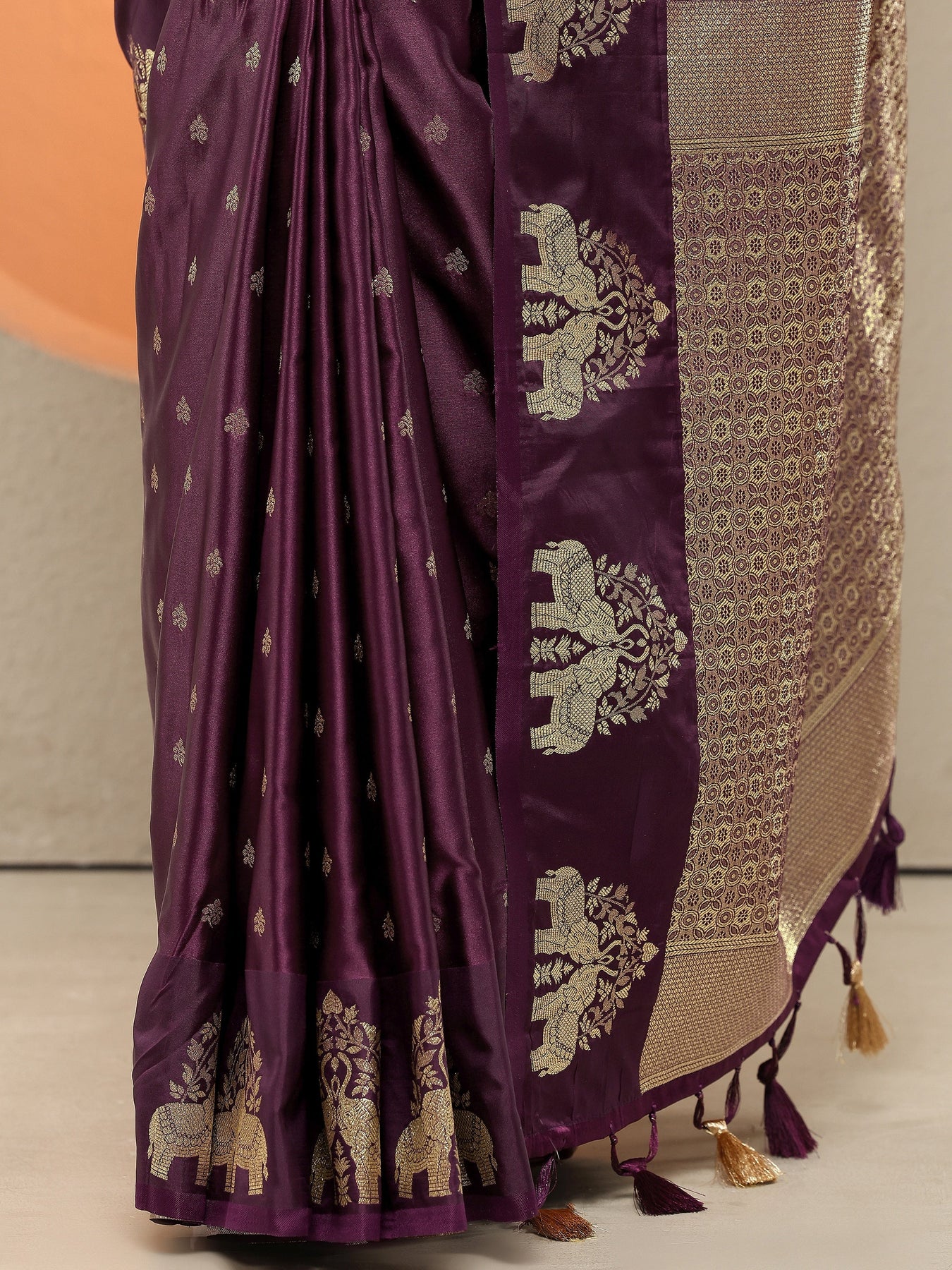 Burgundy Woven Design Silk Blend Sarees With Unstitched Blouse Piece