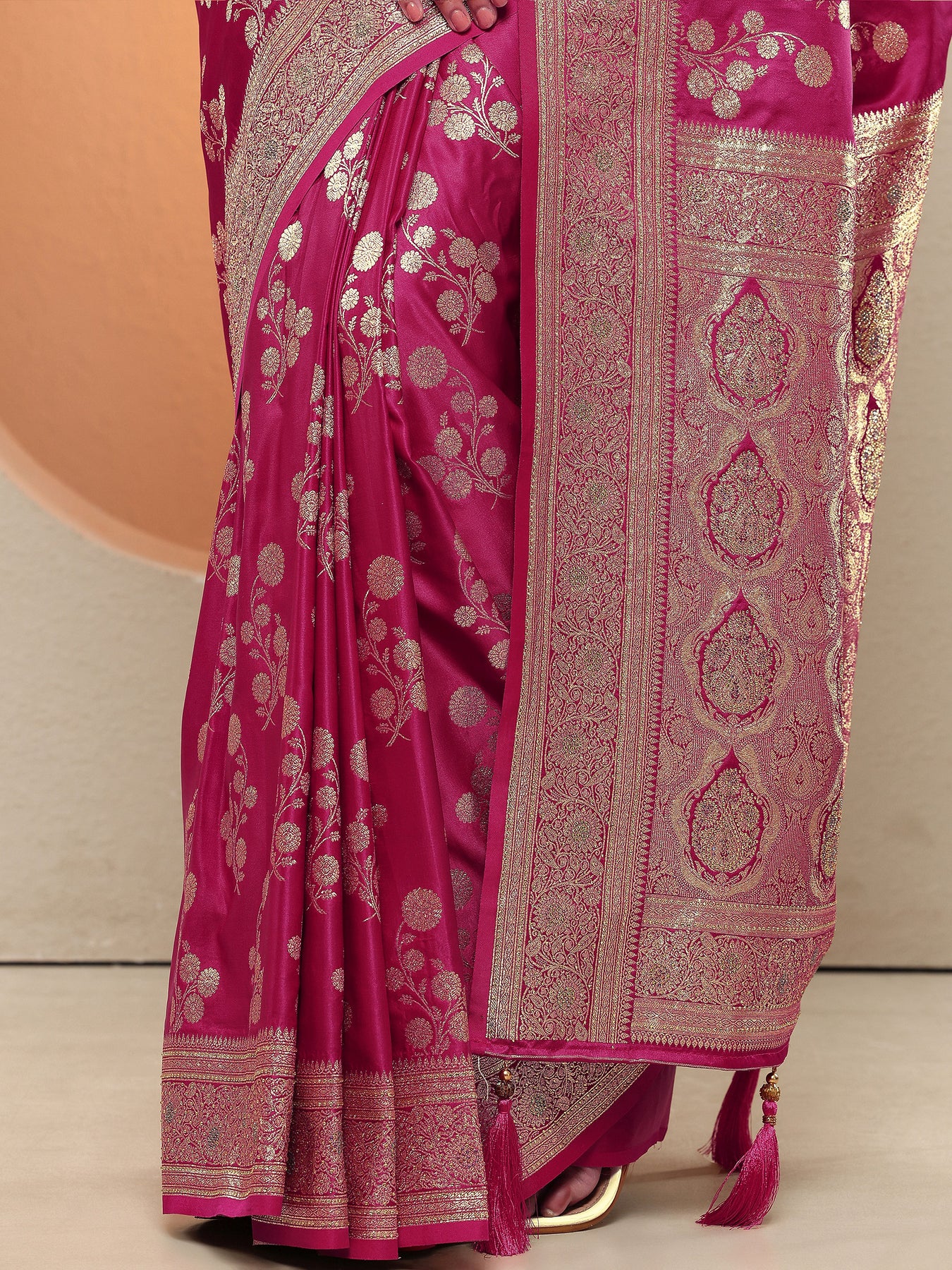 Pink Woven Design Silk Blend Sarees With Unstitched Blouse Piece