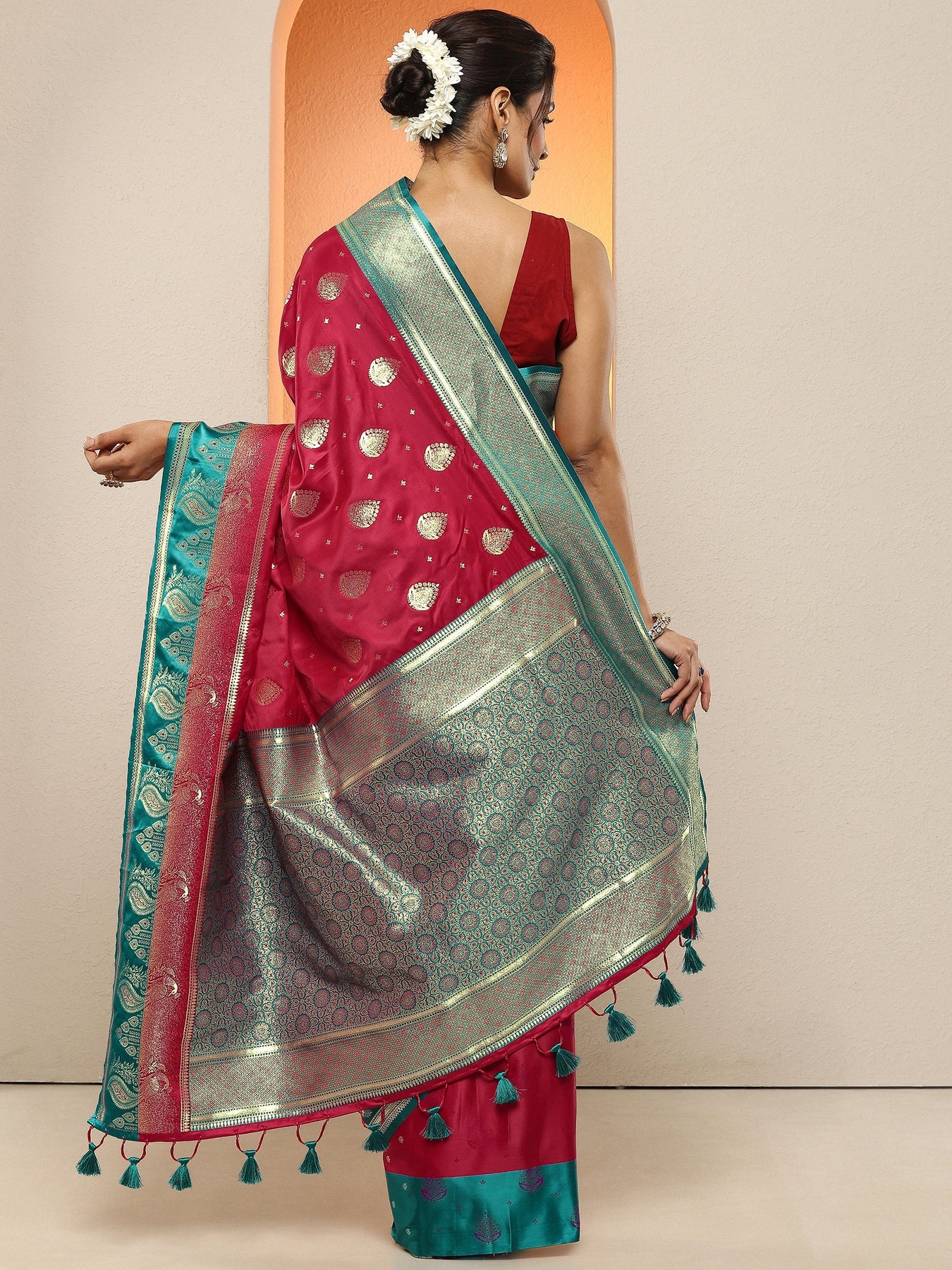 Red Woven Design Silk Blend Sarees With Unstitched Blouse Piece