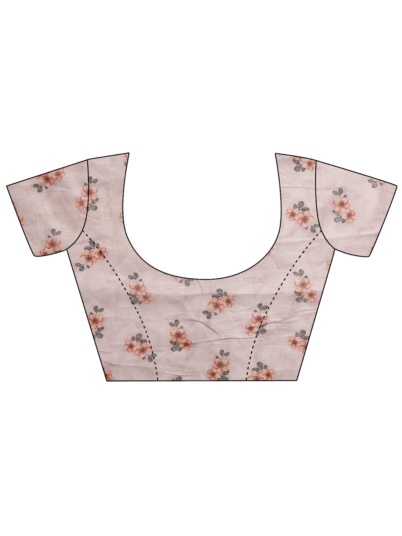 Purple Printed Silk Blend Saree With Unstitched Blouse Piece