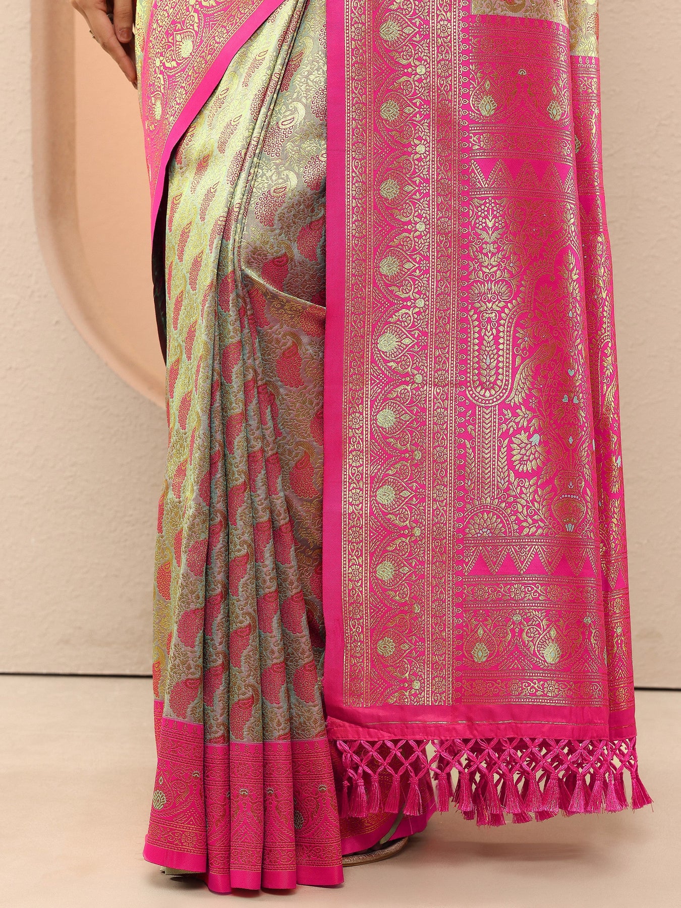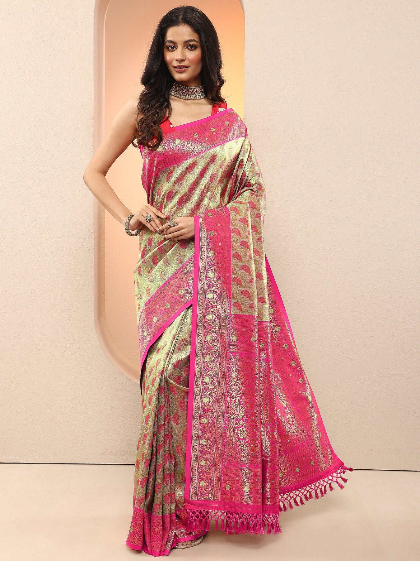 Gold Woven Design Silk Blend Sarees With Unstitched Blouse Piece