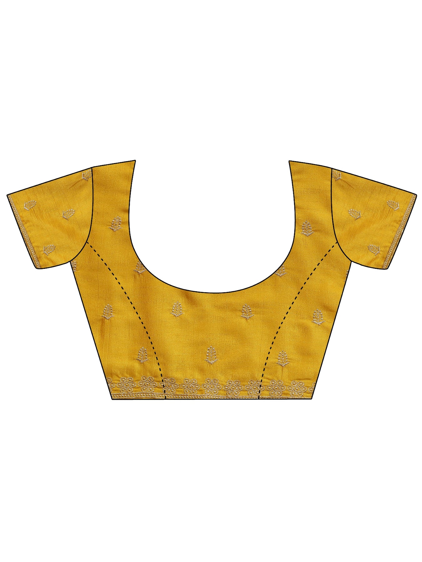Mustard Embroidered Silk Blend Saree With Unstitched Blouse Piece