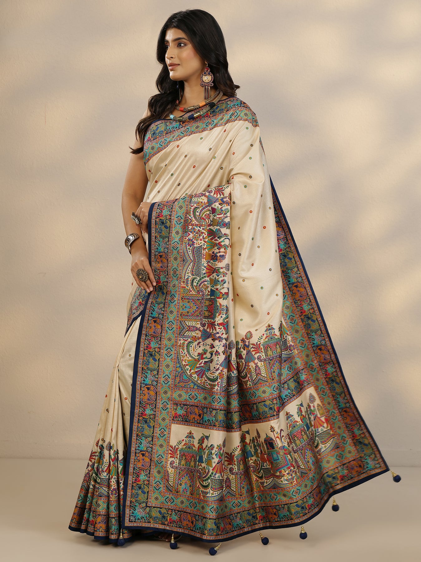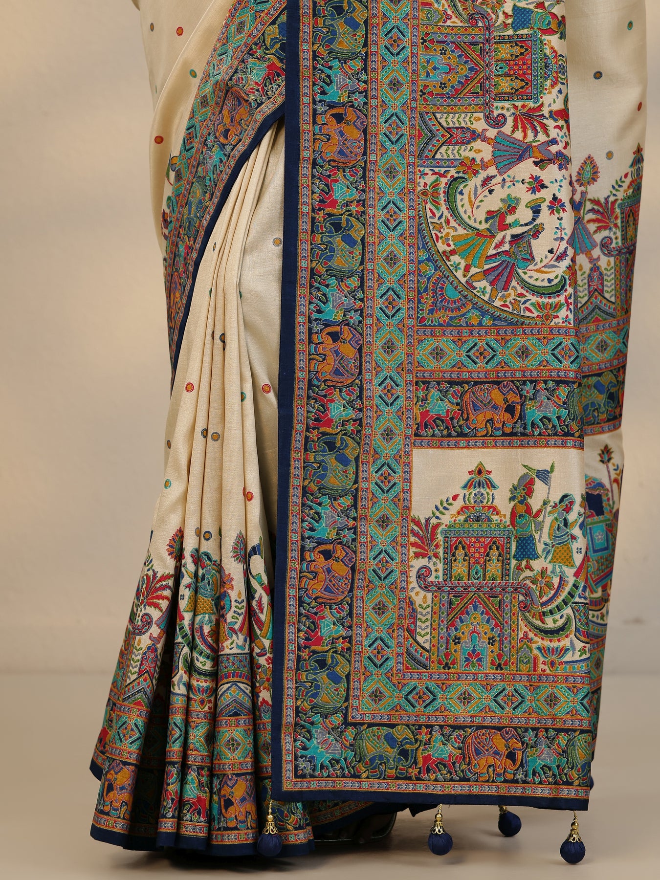 Beige Woven Design Silk Blend Saree With Unstitched Blouse Piece