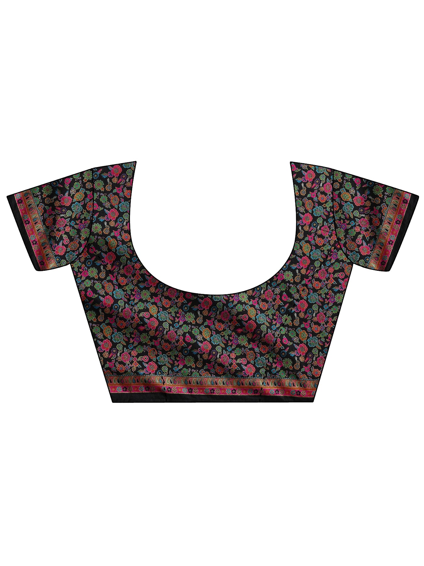 Black Solid Silk Blend Saree With Unstitched Blouse Piece