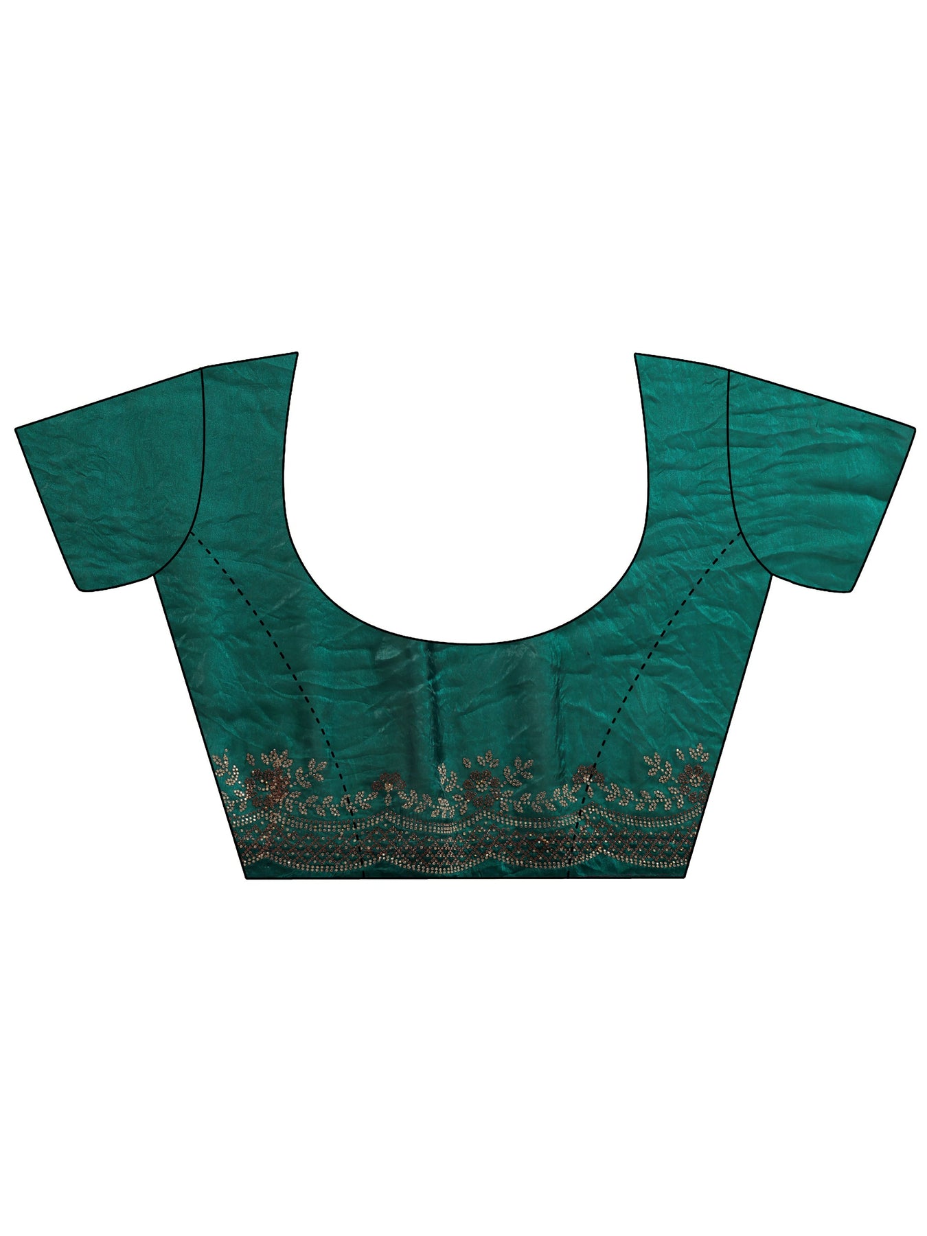 Our teal silk blend saree features captivating embellishments. Complemented with an unstitched blouse piece. This charming saree is perfect for festive occasions.