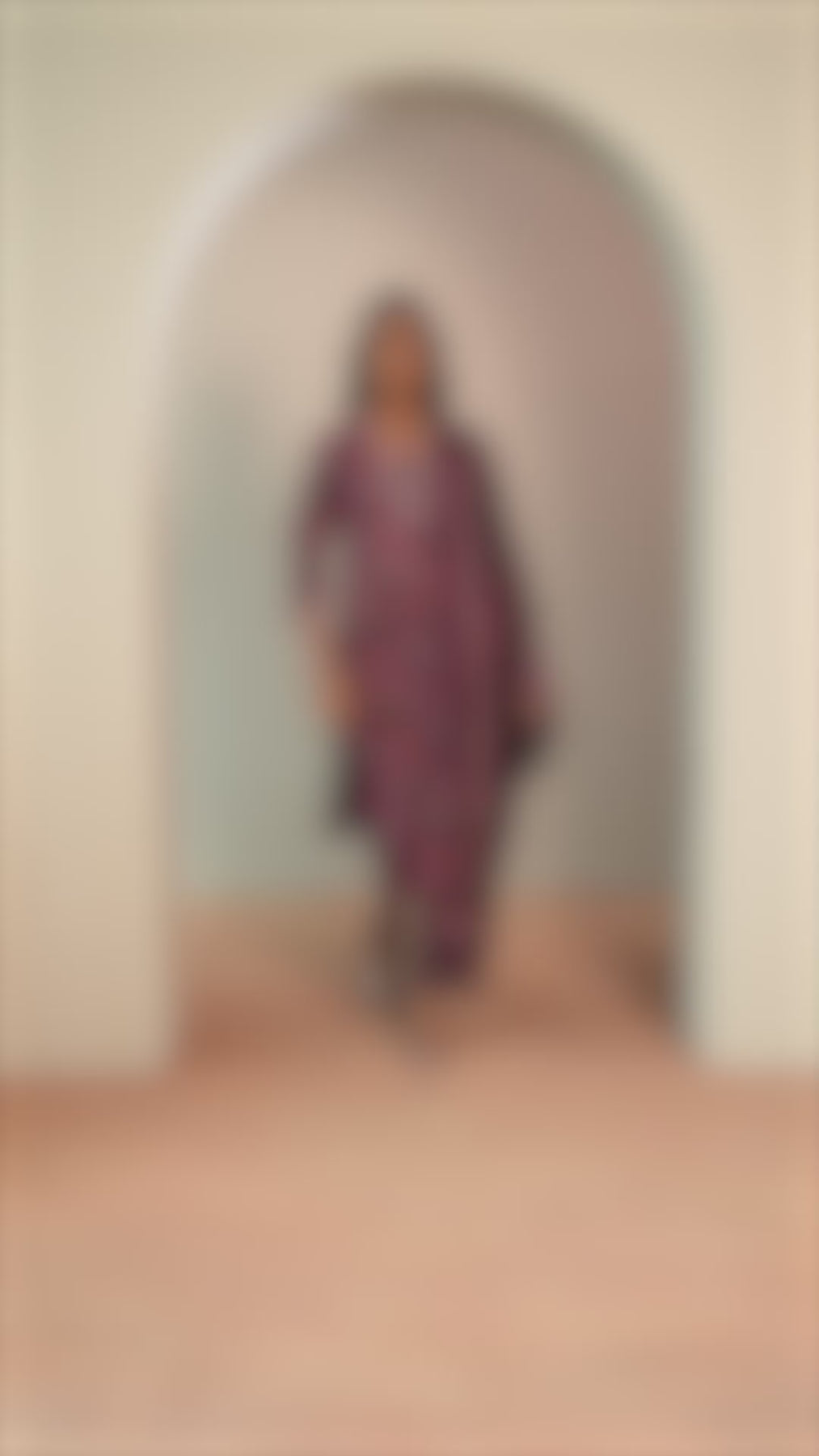 Our 3-piece purple cotton A-line kurta set features a V-neckline, regular sleeves, and statement yoke. Complemented with straight pants with a partially elasticated waistband and 2 pockets, and a printed dupatta. Adorned with paisley printed embellishments, this style is perfect for casual wear.
