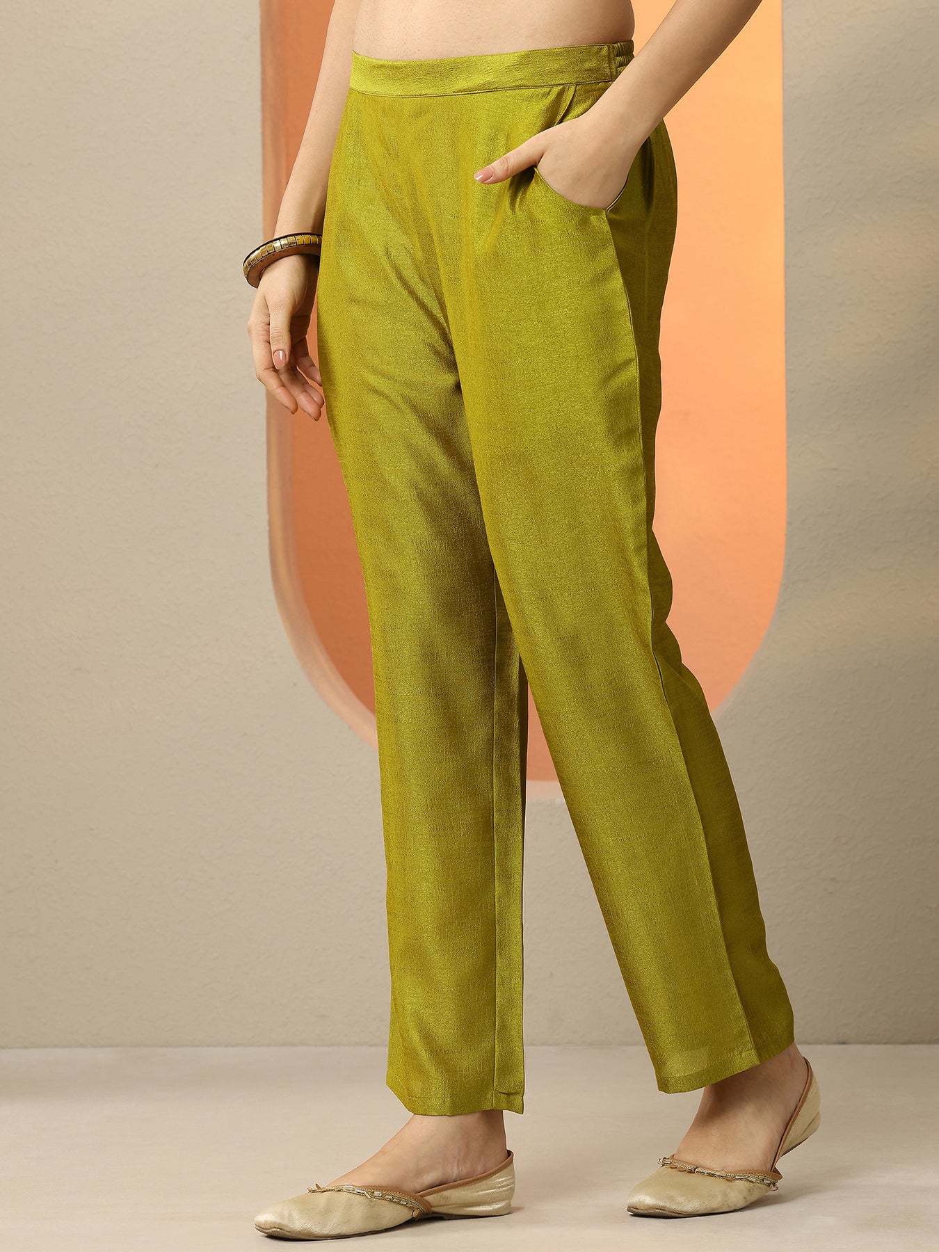 Green Embellished Silk Blend Anarkali Suit Set With Dupatta
