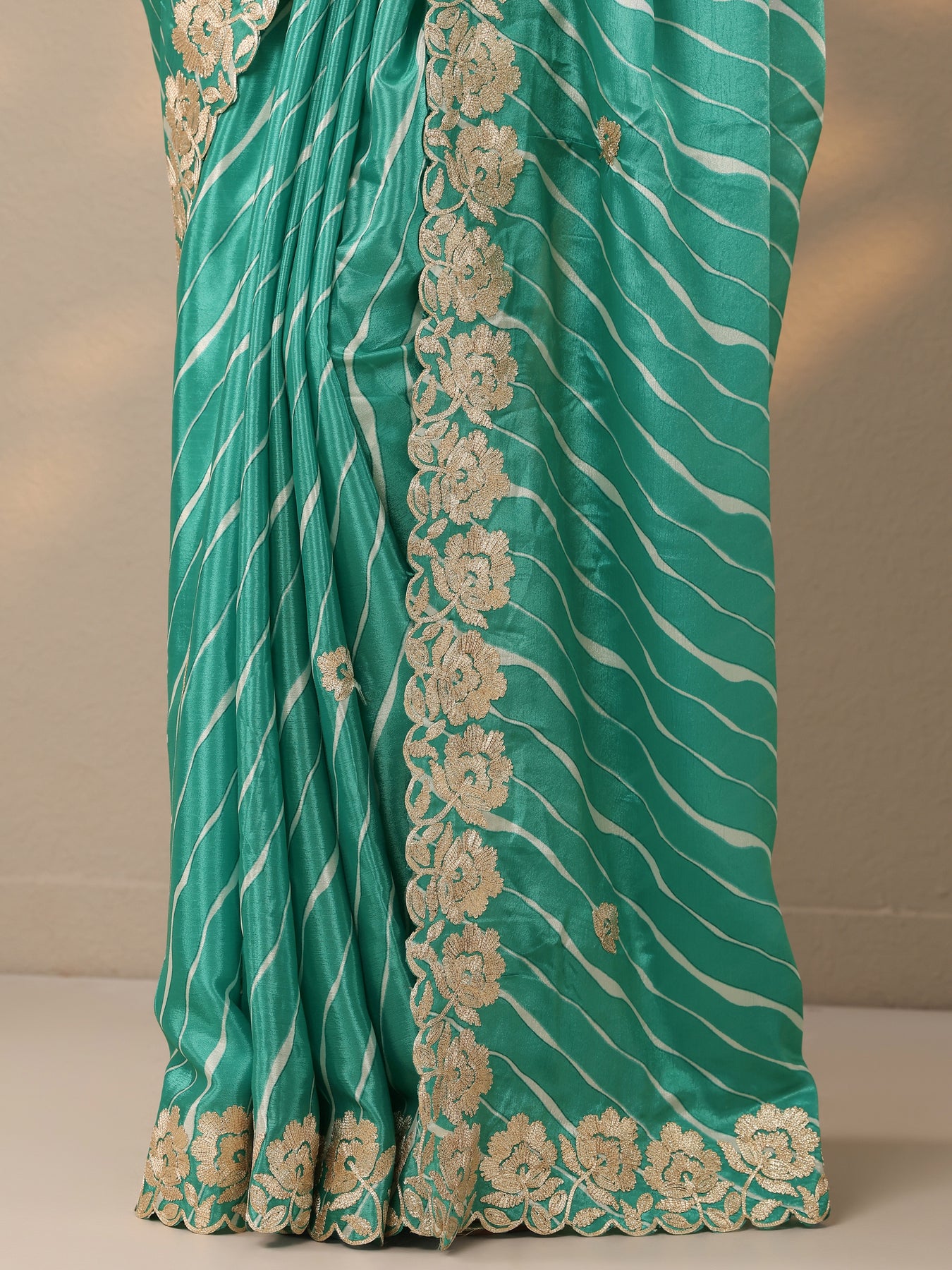 Green Leheriya Printed Chinon Saree With Unstitched Blouse Piece
