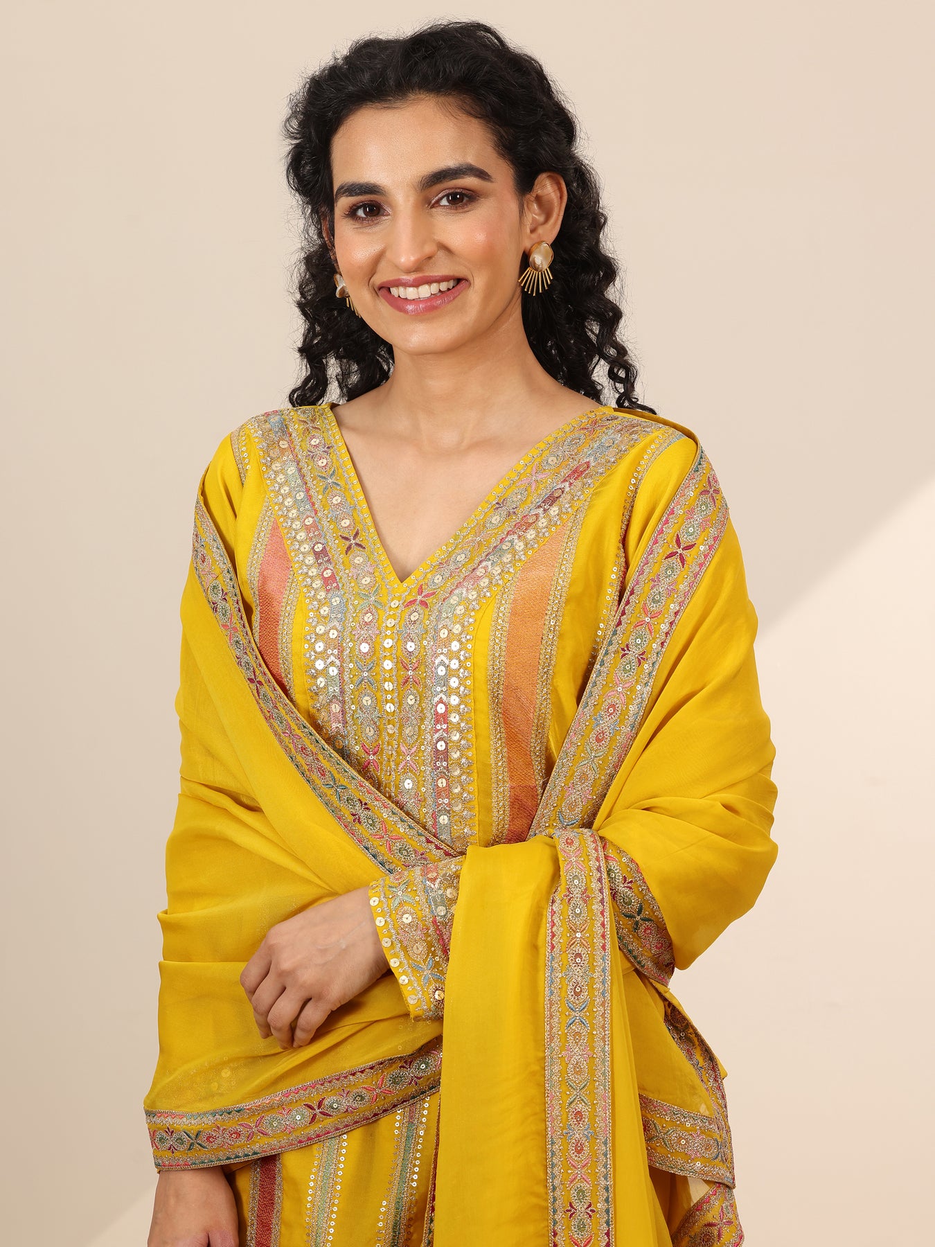 Libas Art Yellow Embellished Organza Straight Suit Set With Dupatta