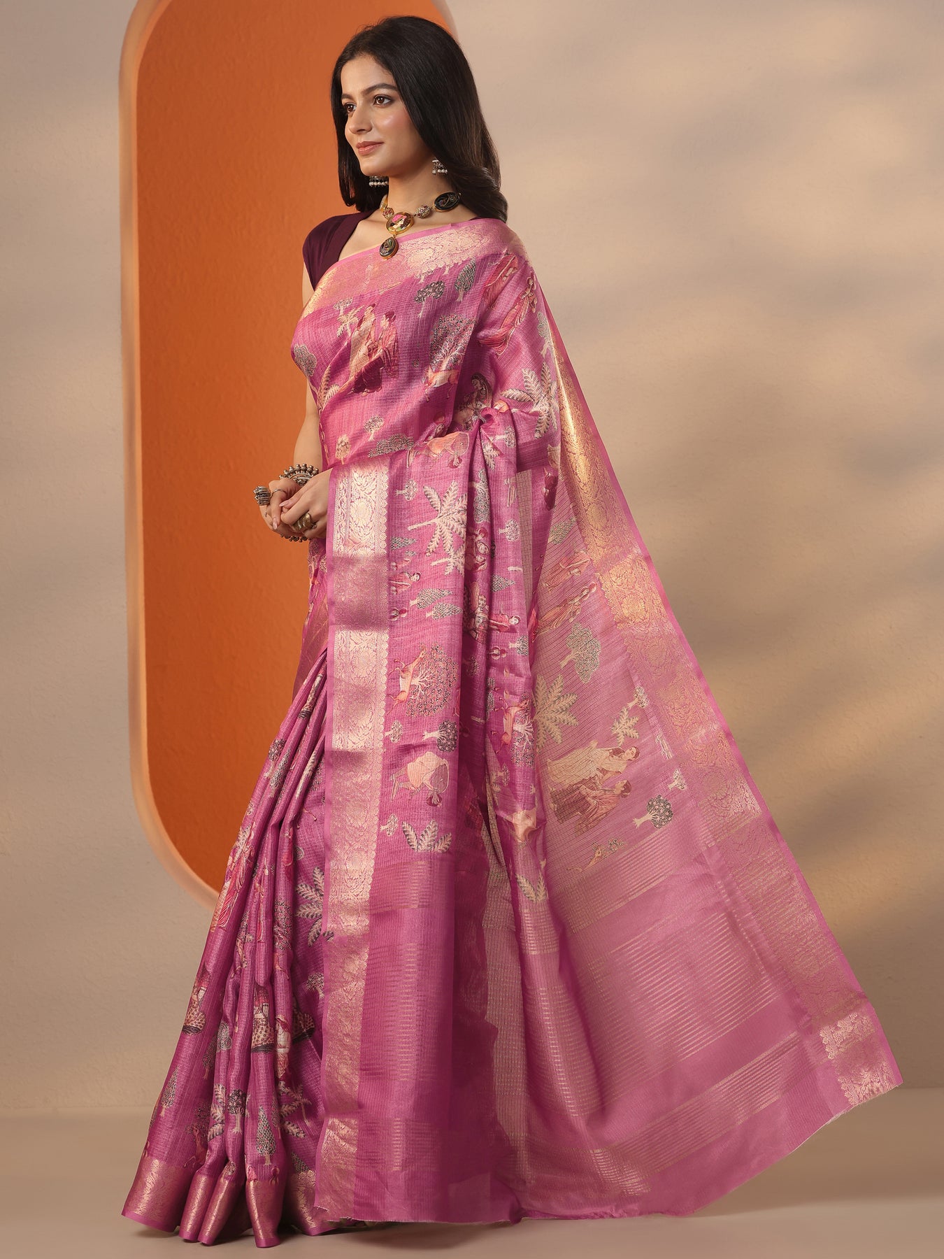 Mauve Tribal Printed Kota Saree With Unstitched Blouse Piece