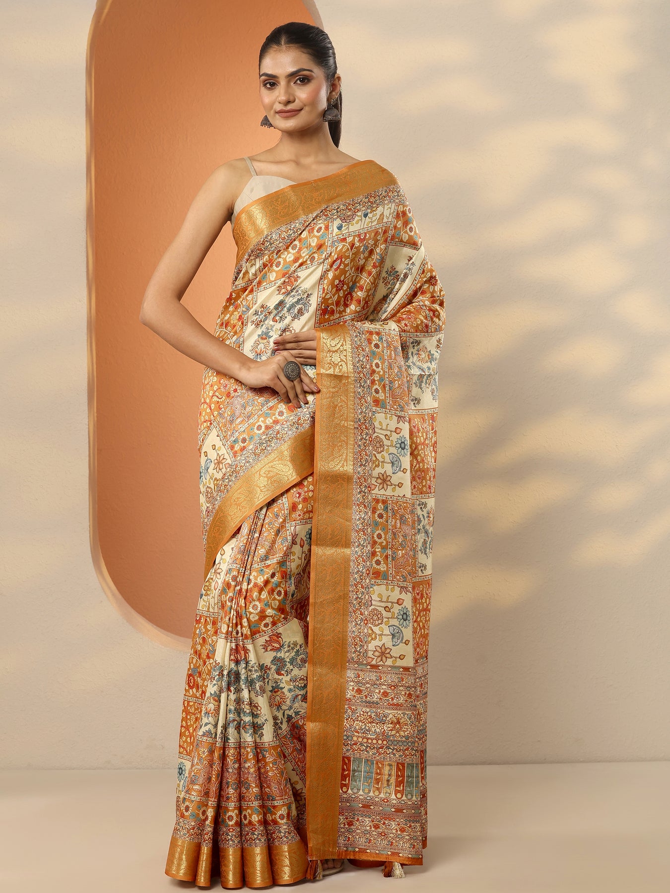 Multi Printed Silk Blend Saree With Unstitched Blouse Piece