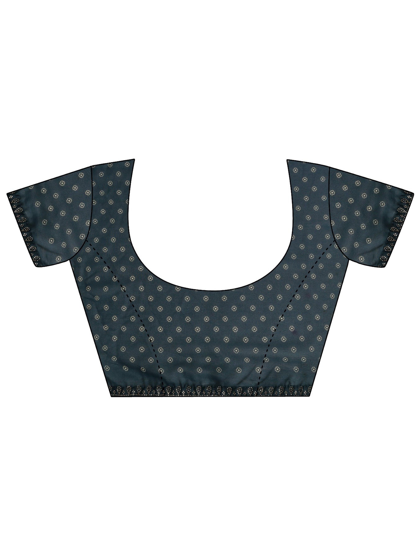 Navy Blue Floral Printed Silk Blend Saree With Unstitched Blouse Piece