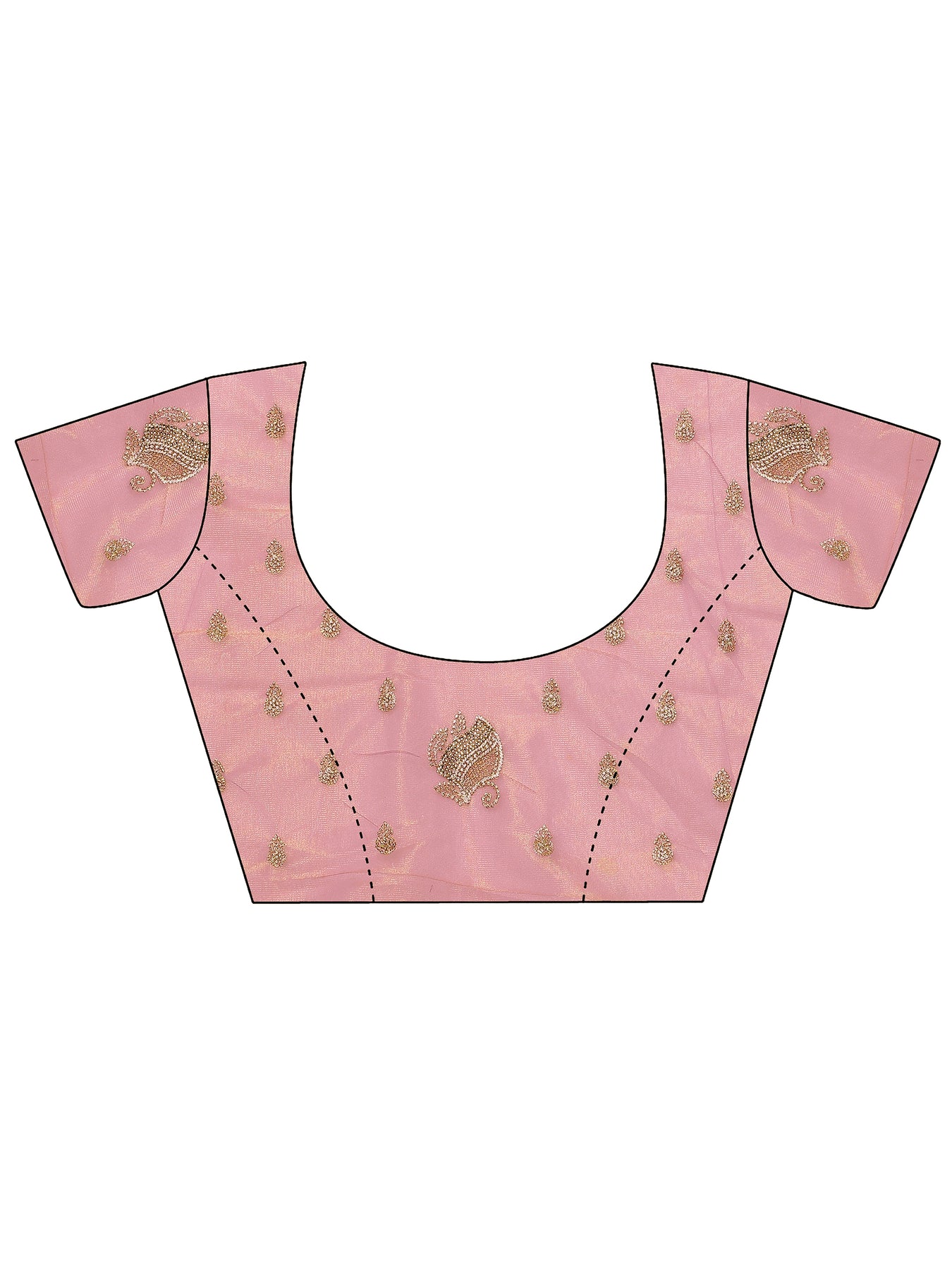 Pink Embroidered Nylon Saree With Unstitched Blouse Piece