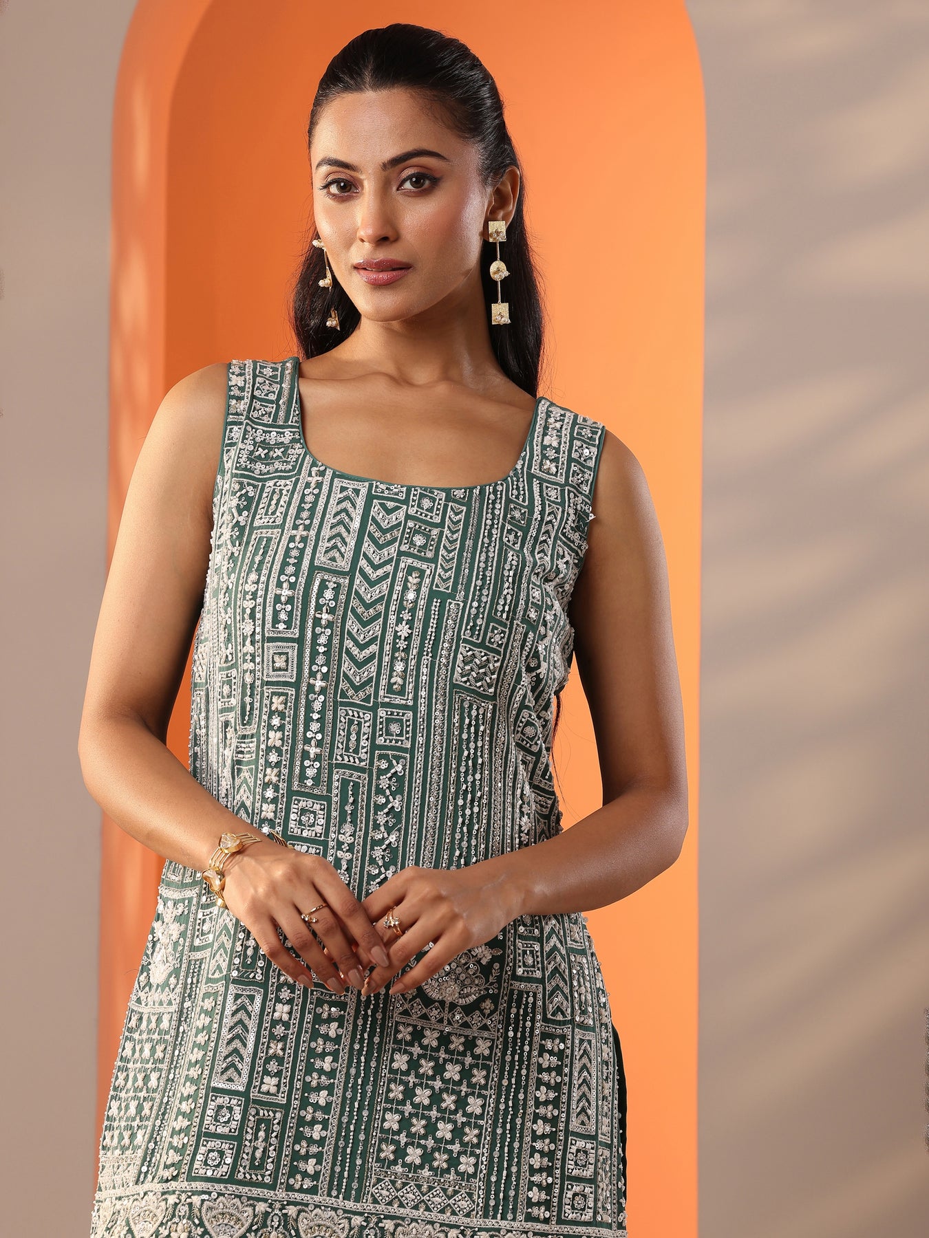 Green Embellished Georgette Straight Suit Set With Dupatta