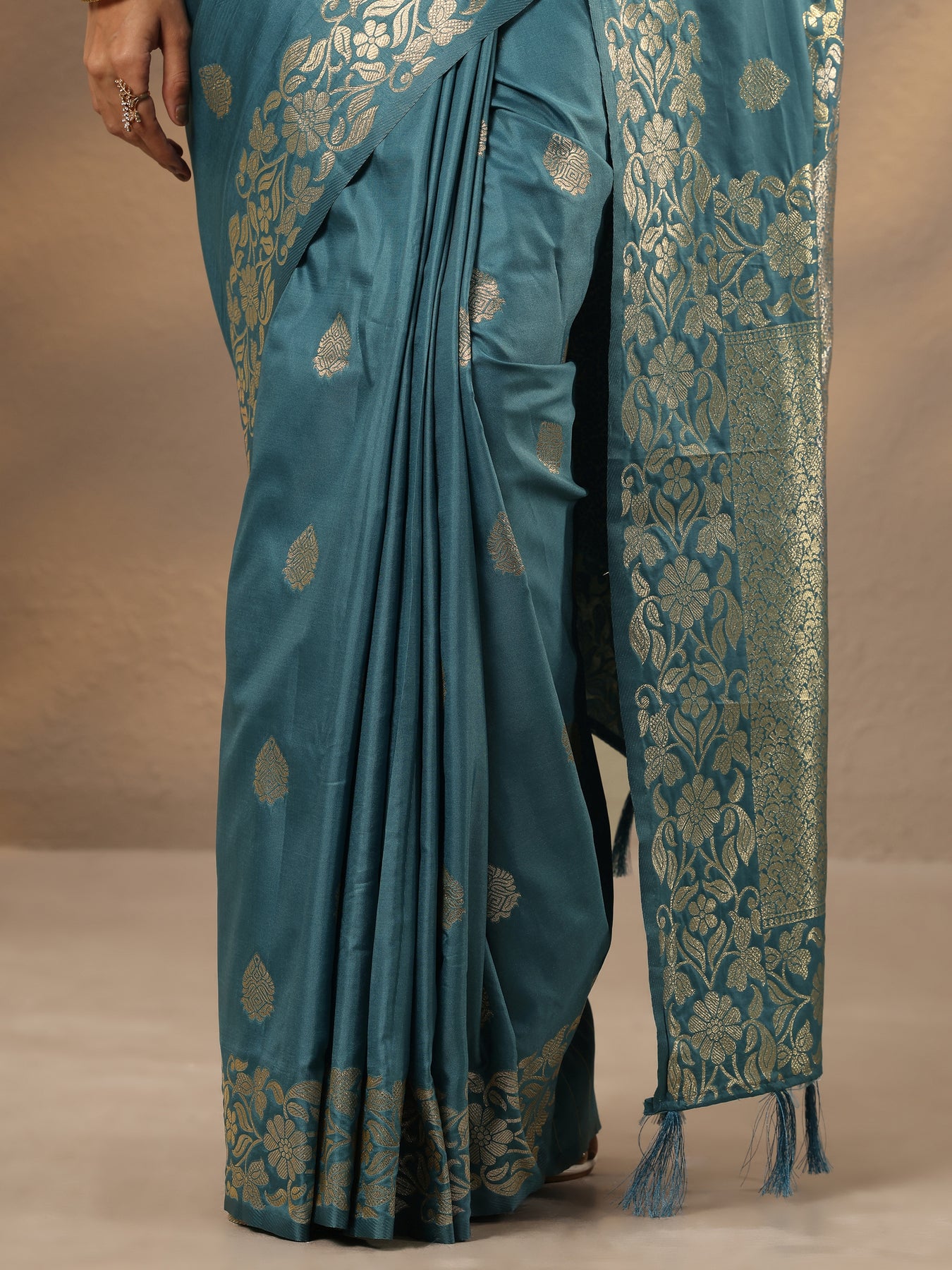 Our Blue Woven Design Silk Blend Saree Features Captivating Ethnic Motif. Complemented With An Unstitched Blouse Piece. This Charming Saree Is Perfect For Festive Occasions.