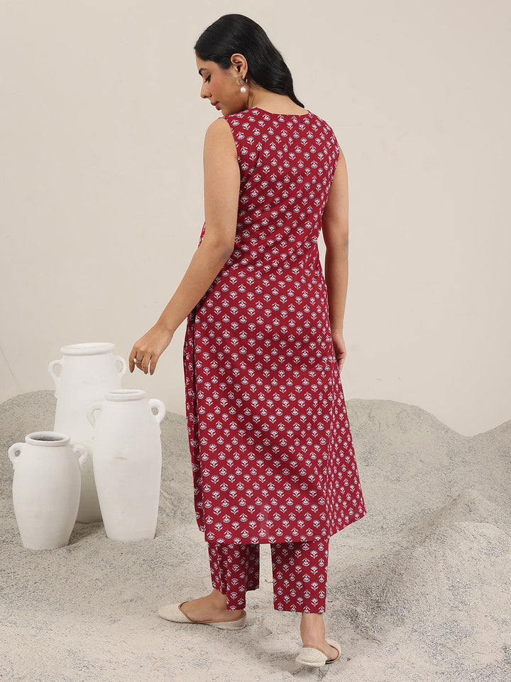 Maroon Printed Pure Cotton A-Line Kurta Set