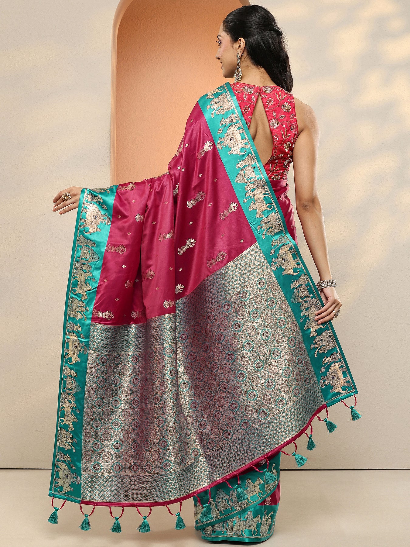 Maroon Woven Design Silk Blend Sarees With Unstitched Blouse Piece