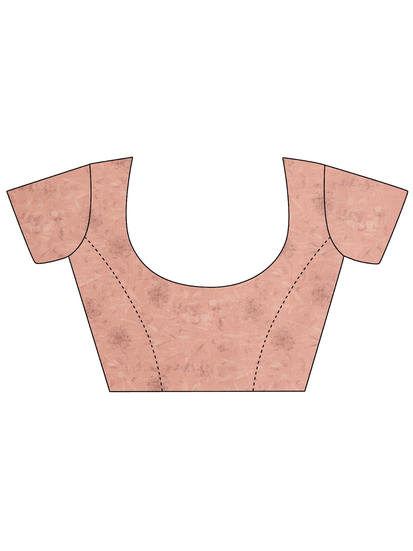 Our Peach Printed Silk Blend Saree Features Captivating Floral Print. Complemented With A Unstitched Blouse Piece. This Charming Saree Is Perfect For Festive Wear