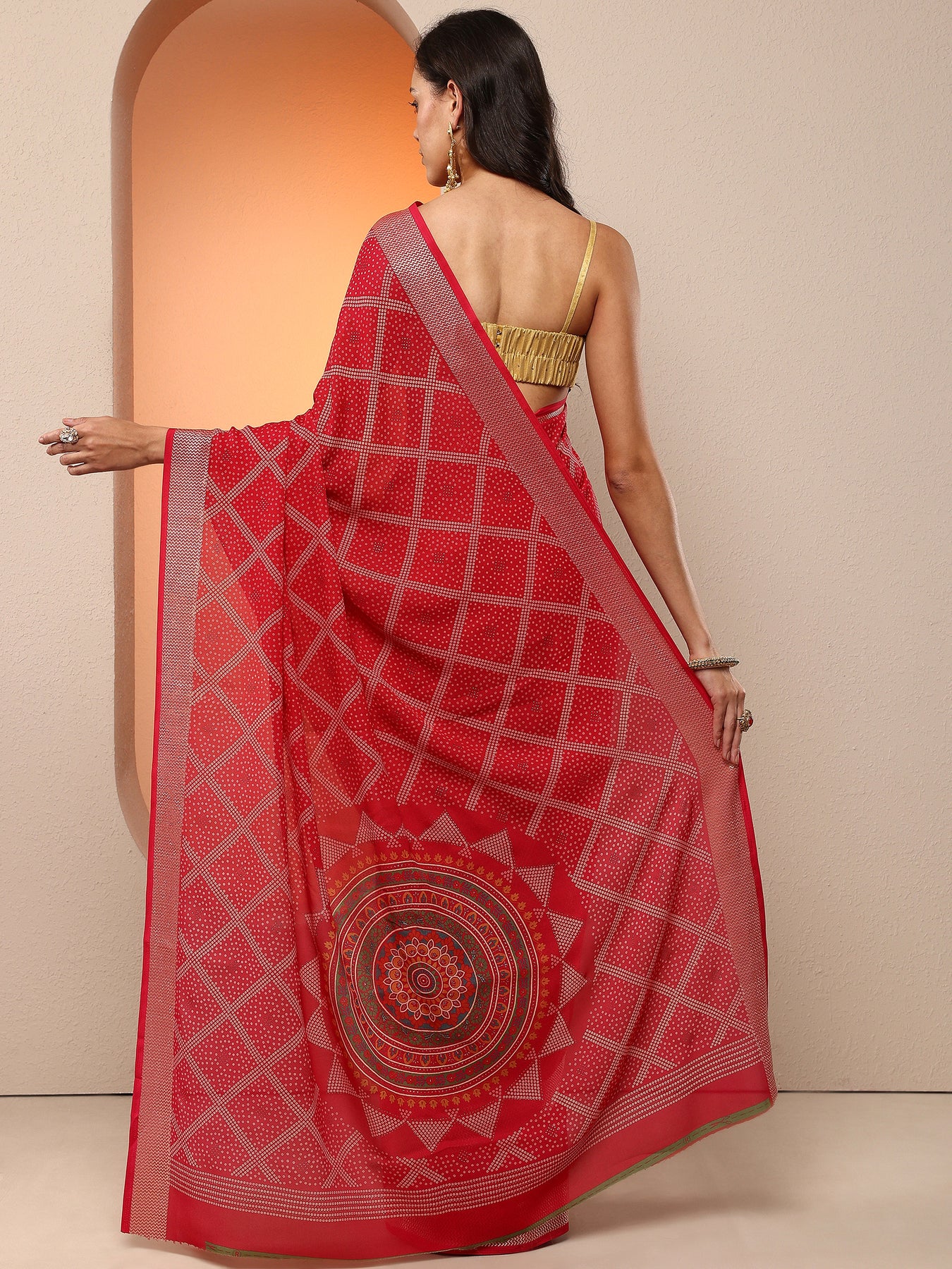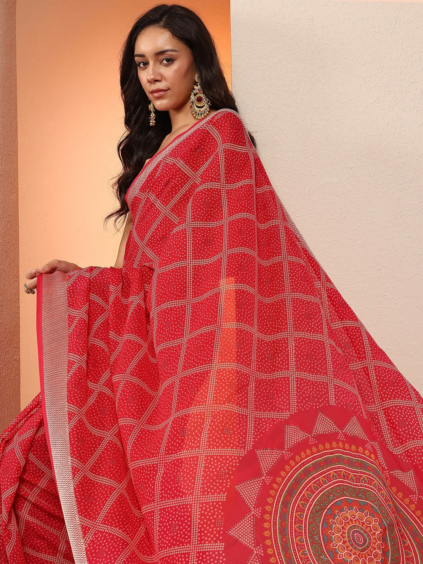 Pink Bandhani Printed Georgette Saree With Unstitched Blouse Piece