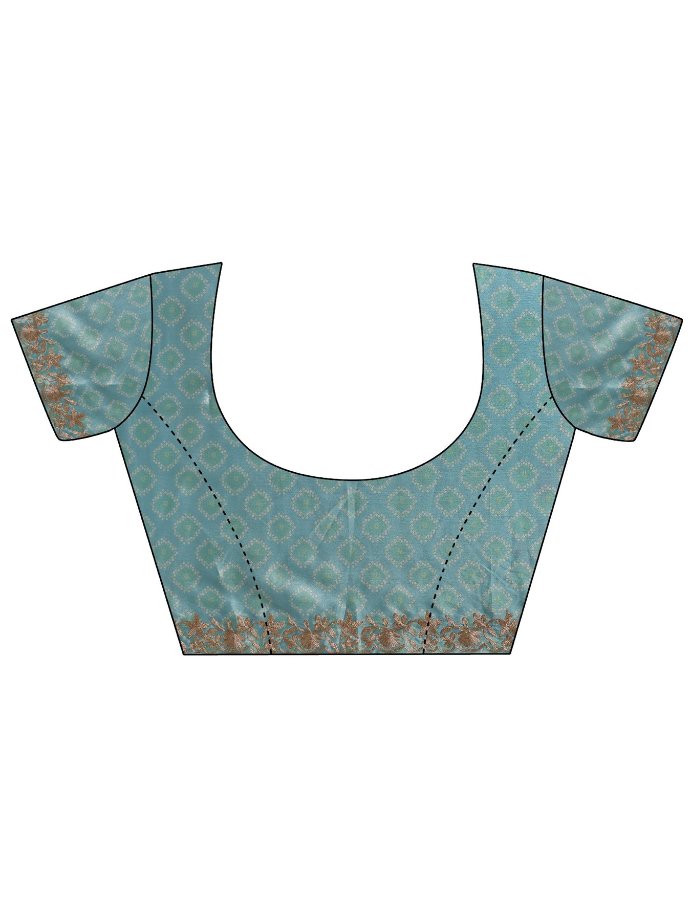 Our Turquoise Blue Printed Chinon Saree Features Captivating Embellishments. Complemented With An Unstitched Blouse Piece. This Charming Saree Is Perfect For Festive Occasions