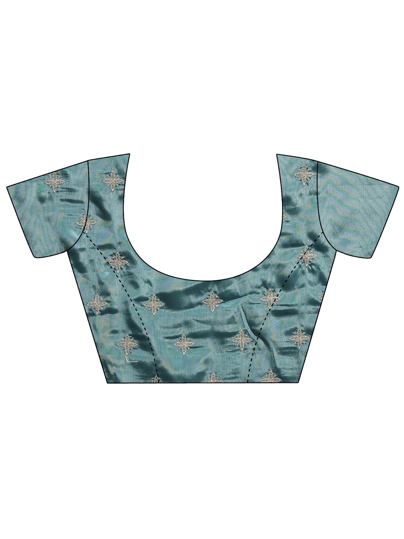 Our teal printed silk blend saree features captivating embellishments. Complemented with a Unstitched blouse piece.. This charming saree is perfect for special occasions.