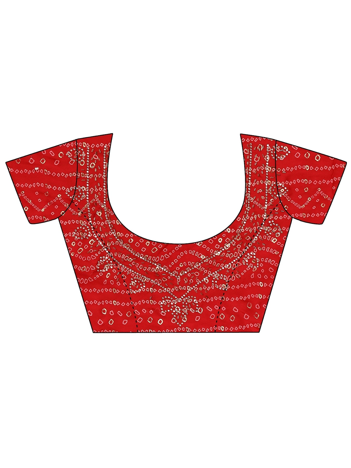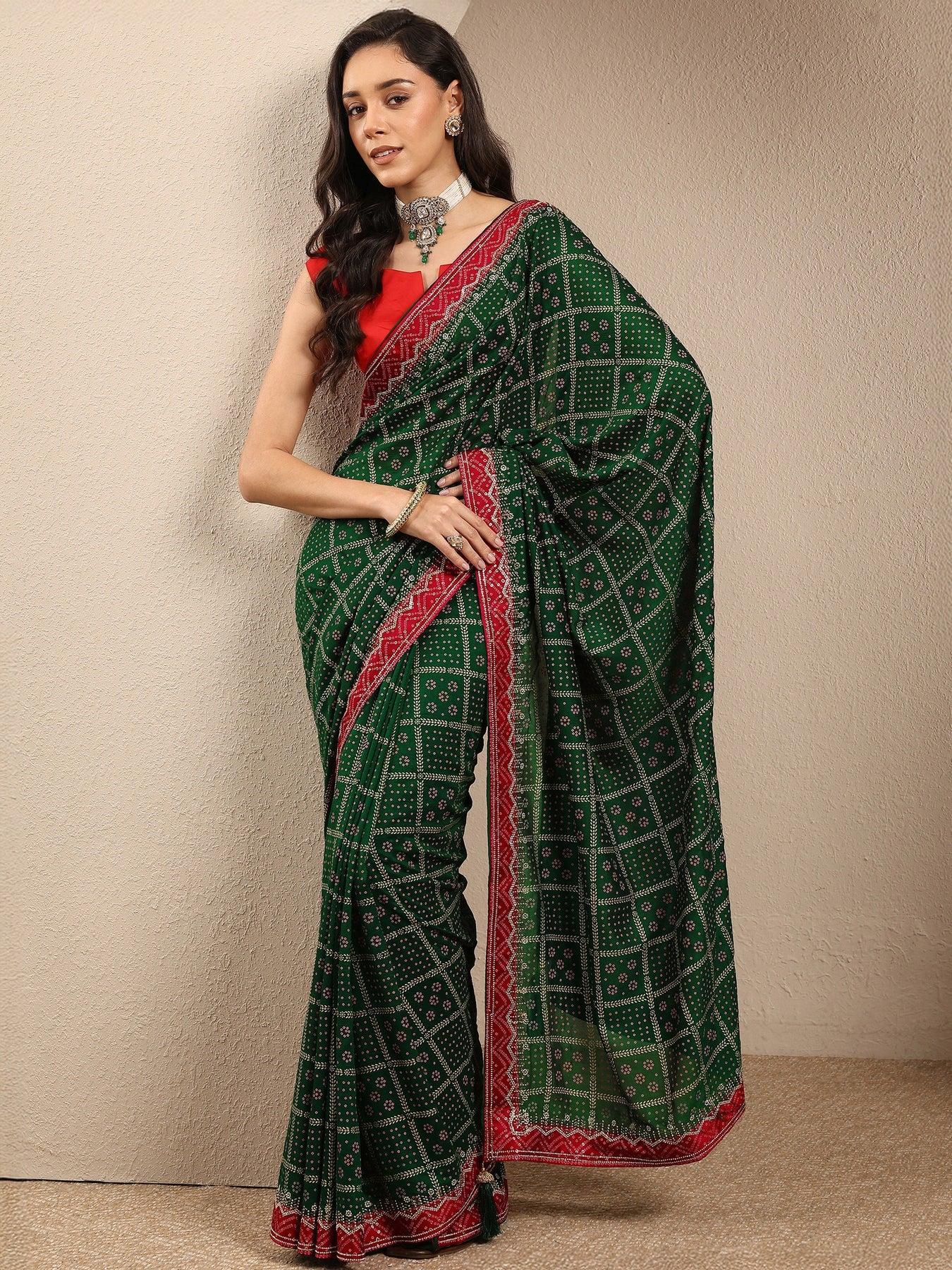 Green Bandhani Printed Silk Blend Saree With Unstitched Blouse Piece