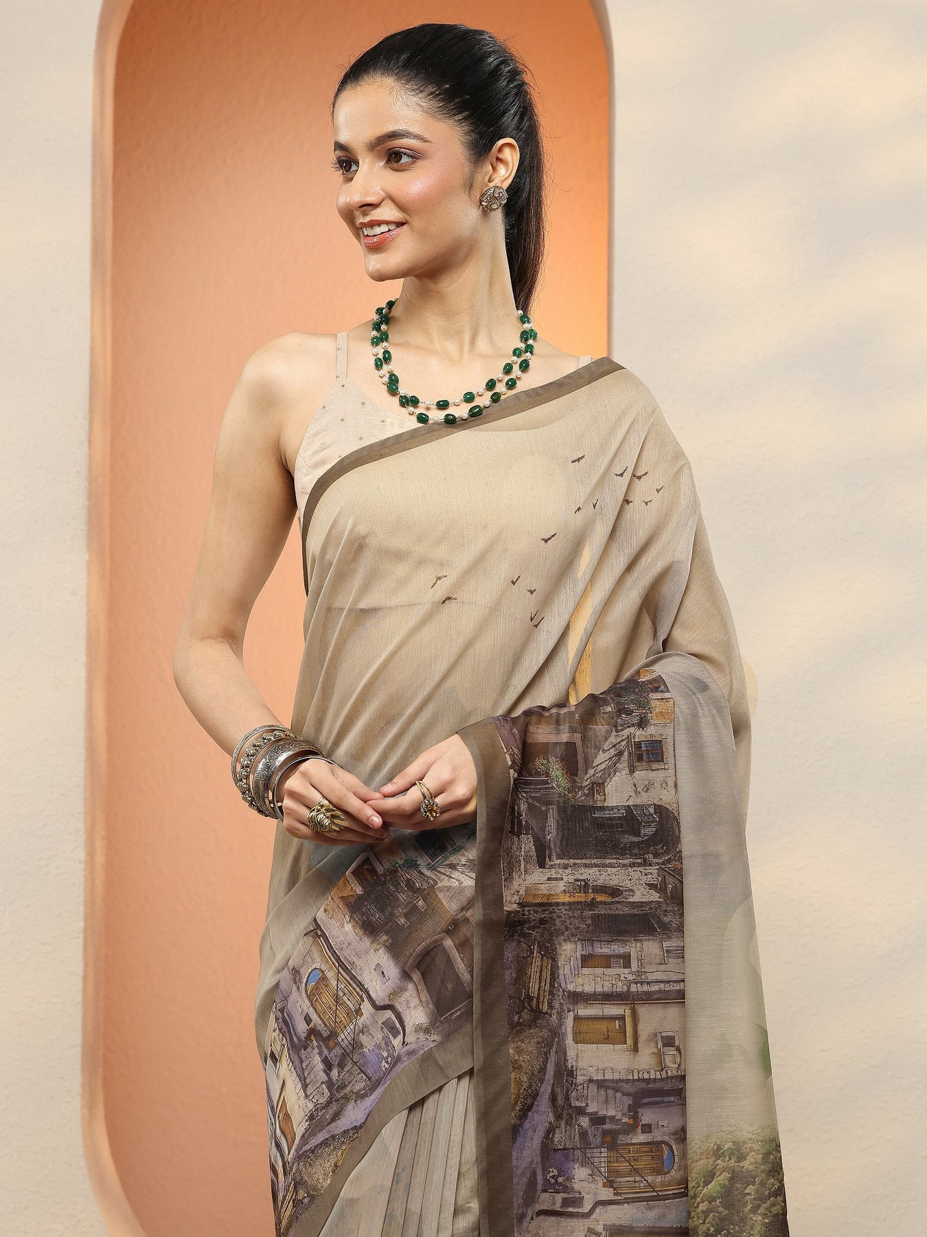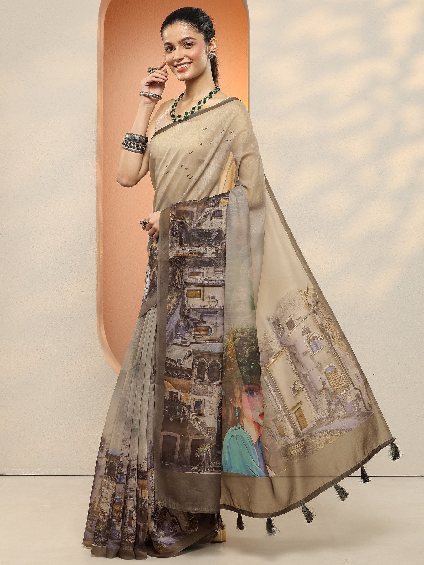 Green Tribal Printed Sarees With Unstitched Blouse Piece