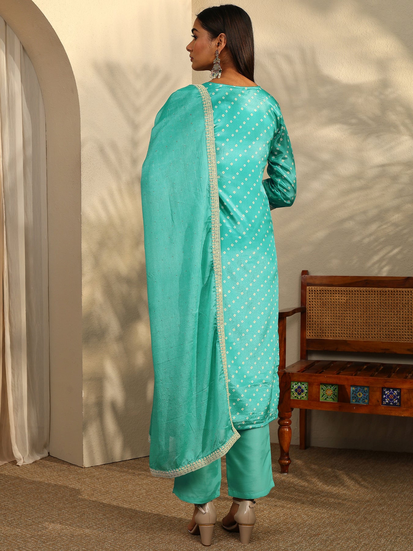 Blue Bandhani Printed Chinon Straight Suit Set With Dupatta