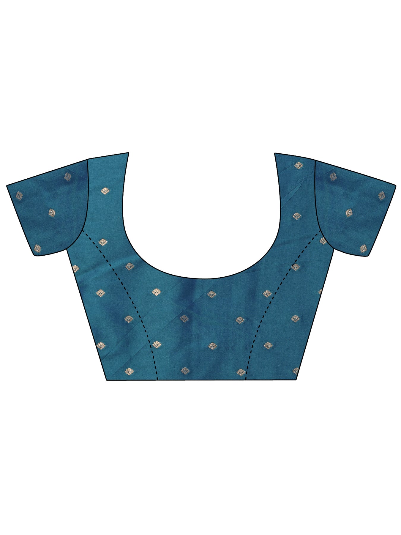 Blue Woven Design Banarasi Silk Blend Saree With Unstitched Blouse Pie