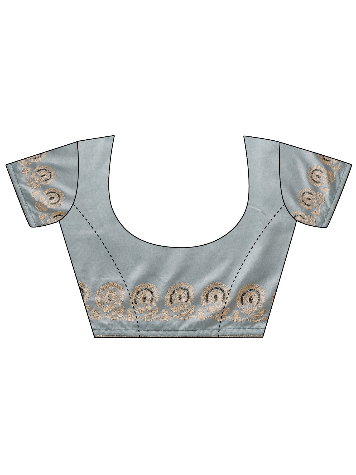 Blue Embroidered Satin Saree With Unstitched Blouse Piece