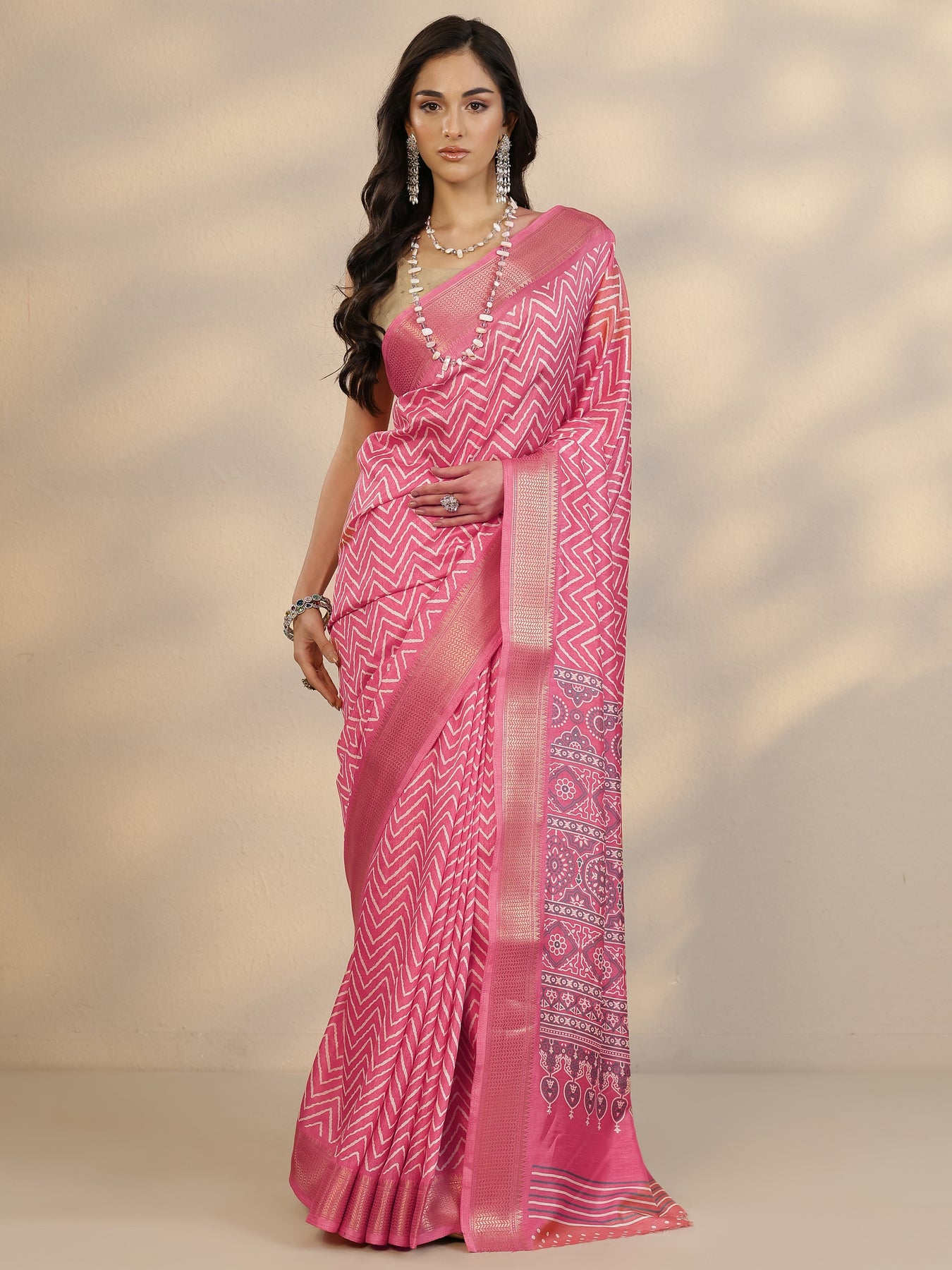 Coral Printed Silk Blend Saree With Unstitched Blouse Piece