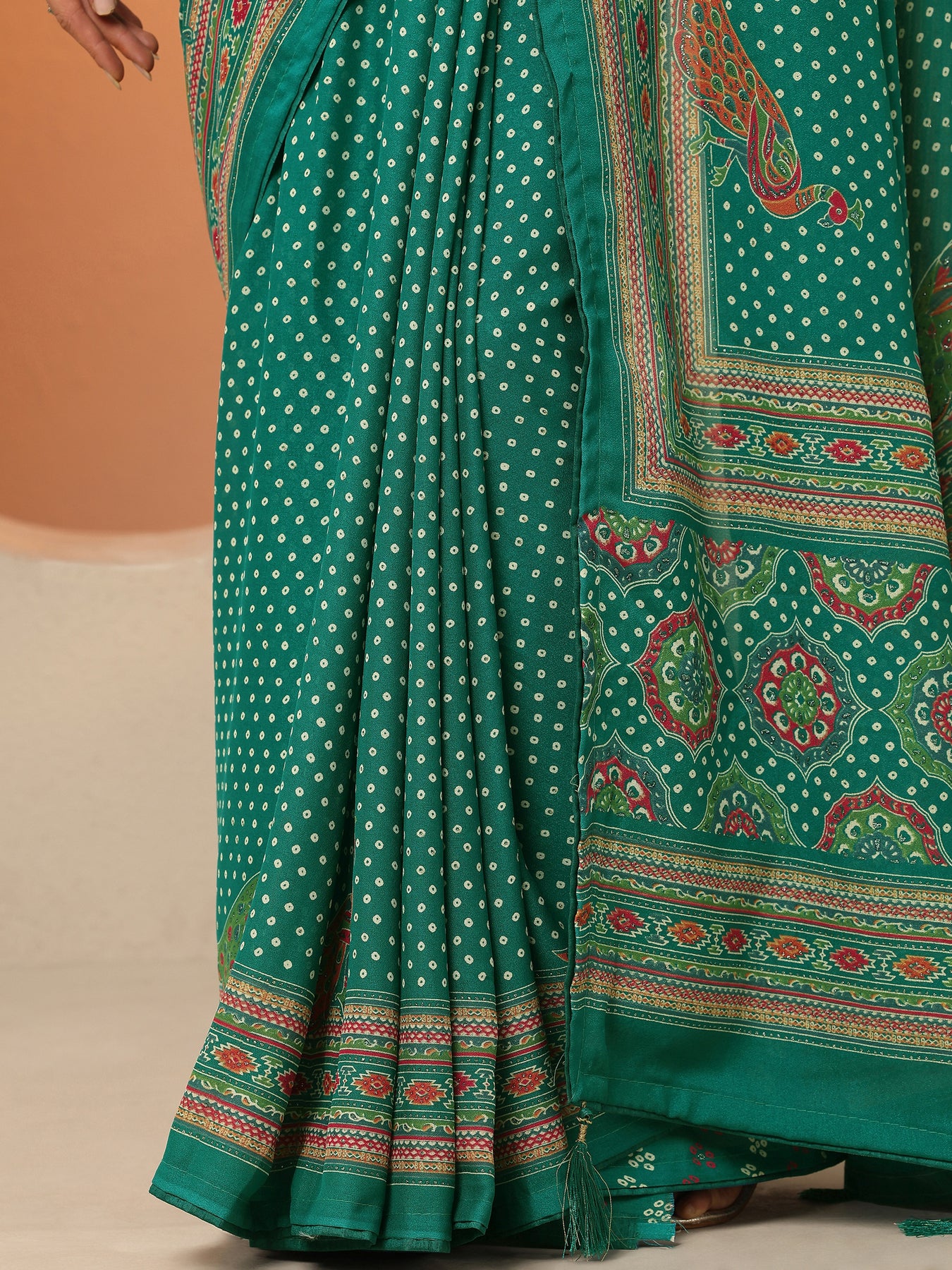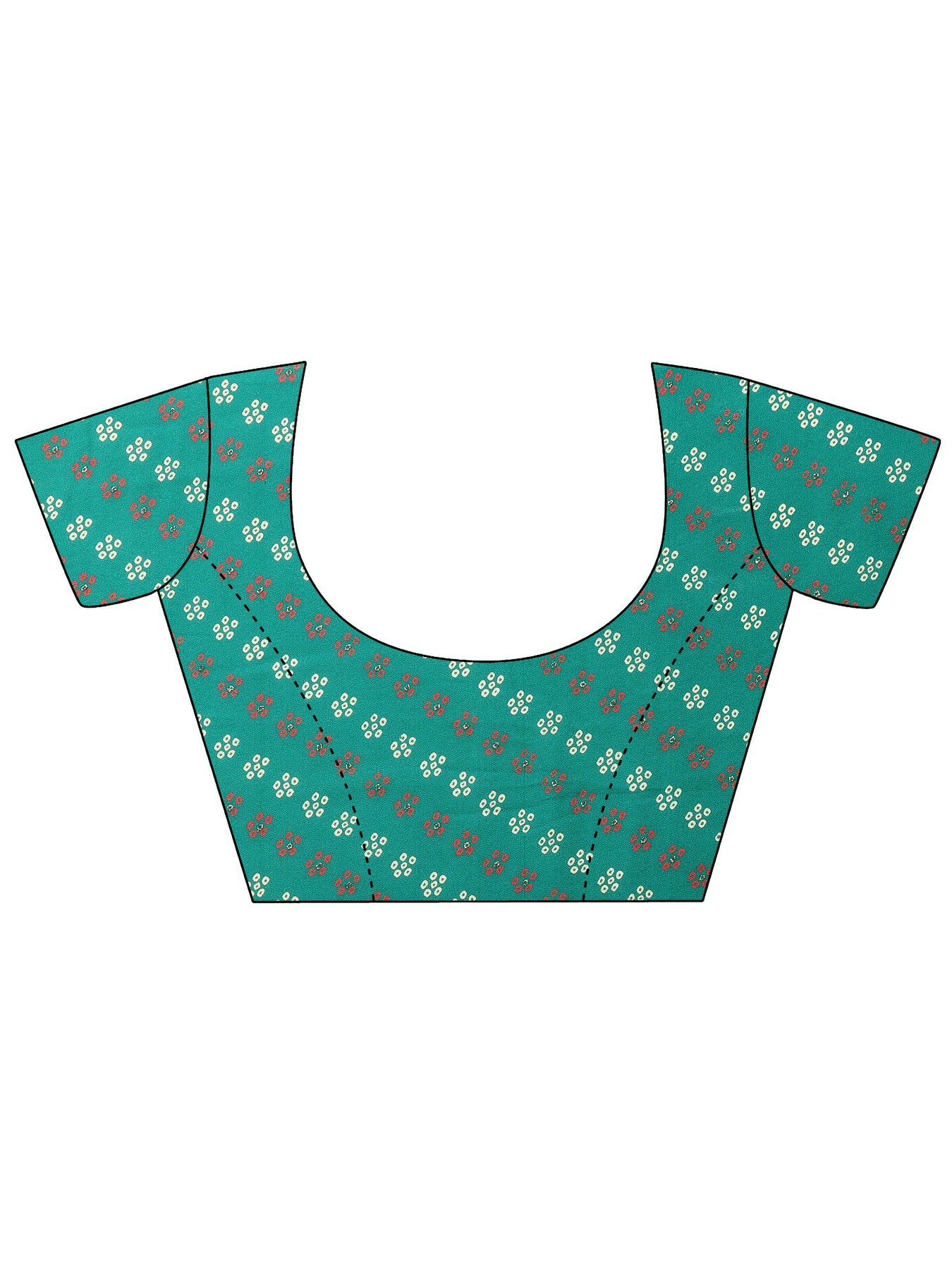 Green Bandhani Printed Silk Blend Saree With Unstitched Blouse Piece