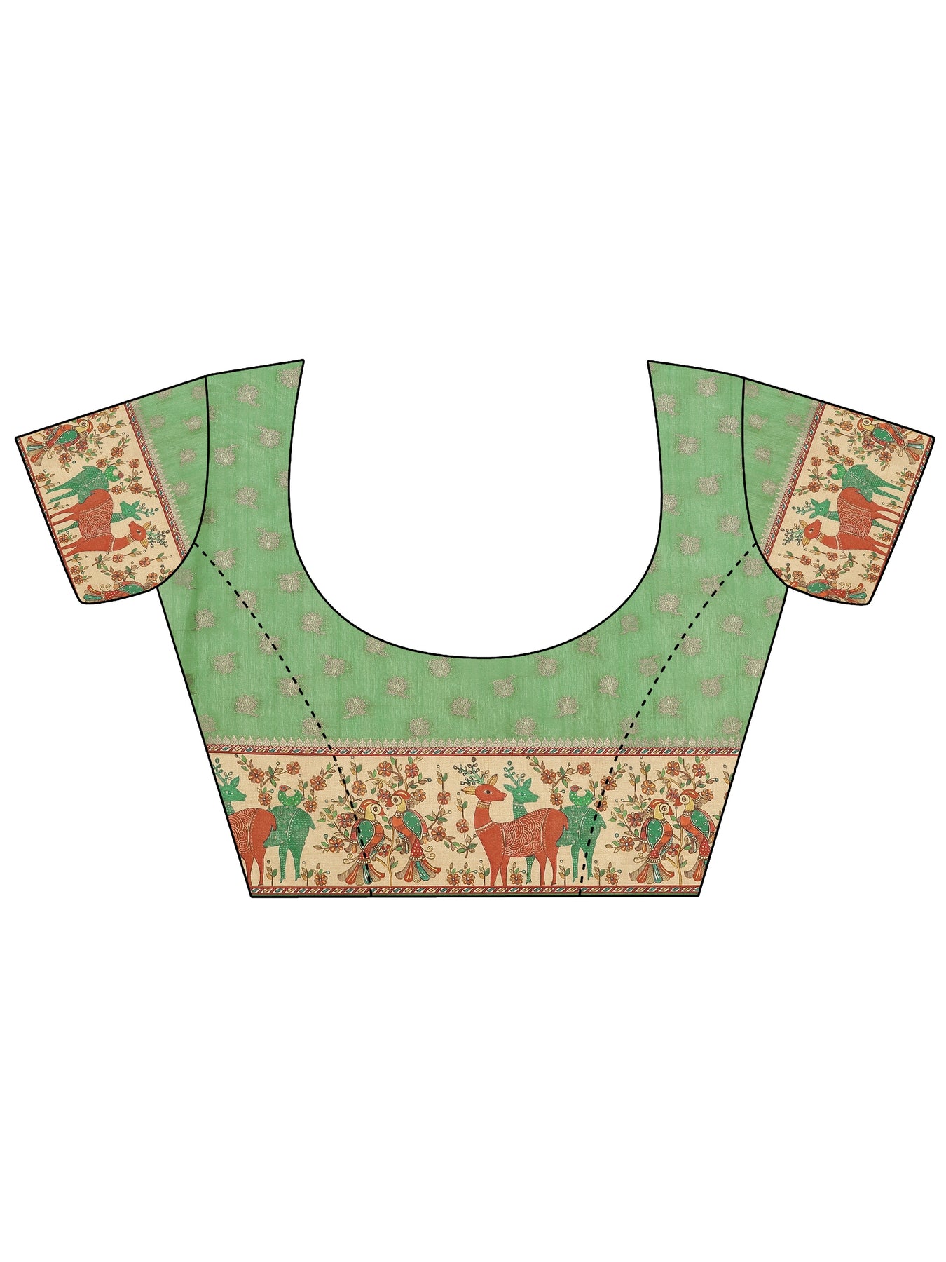 Green Woven Design Silk Blend Saree With Unstitched Blouse Piece