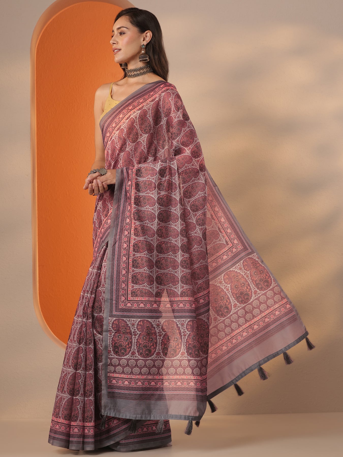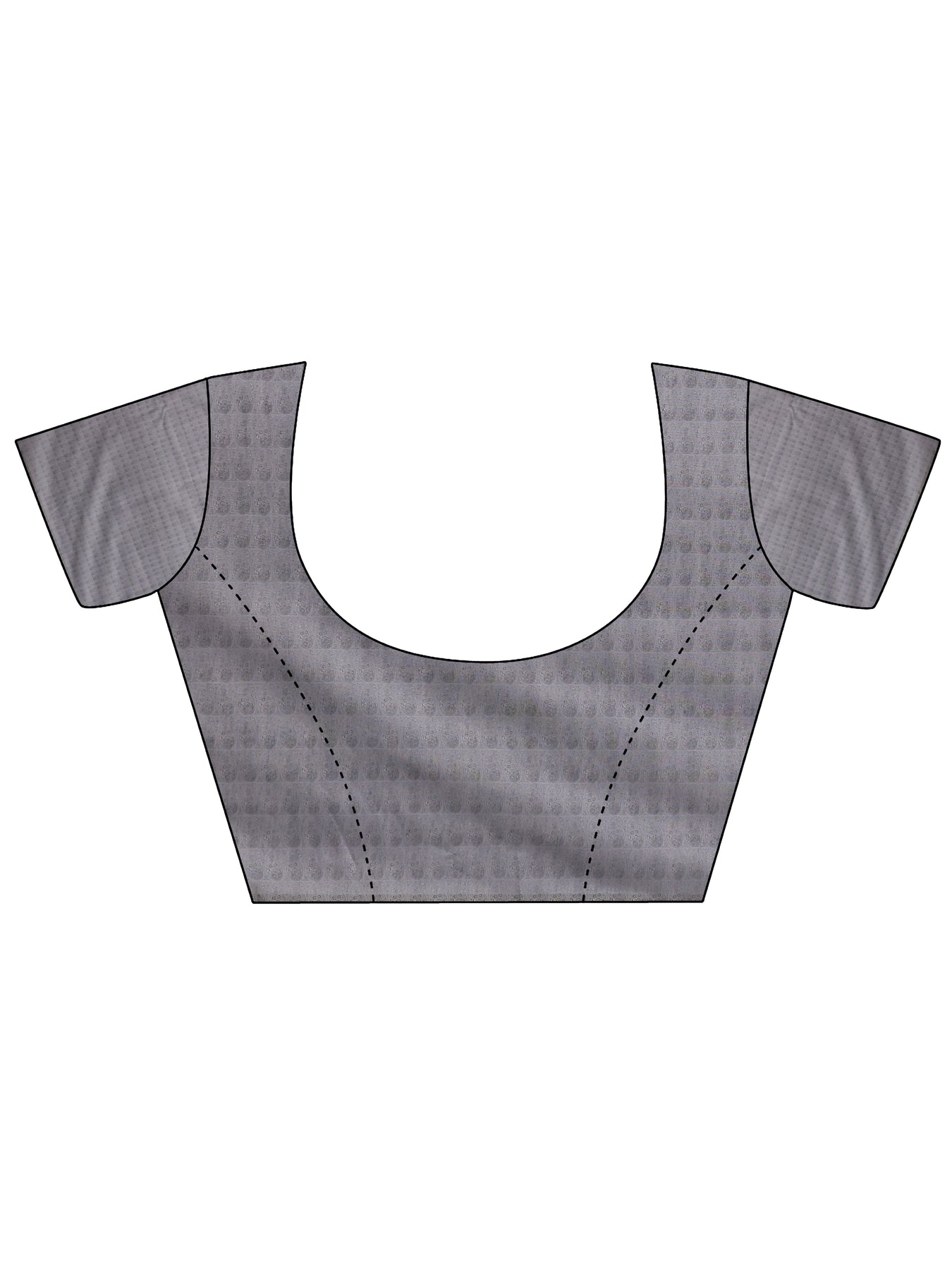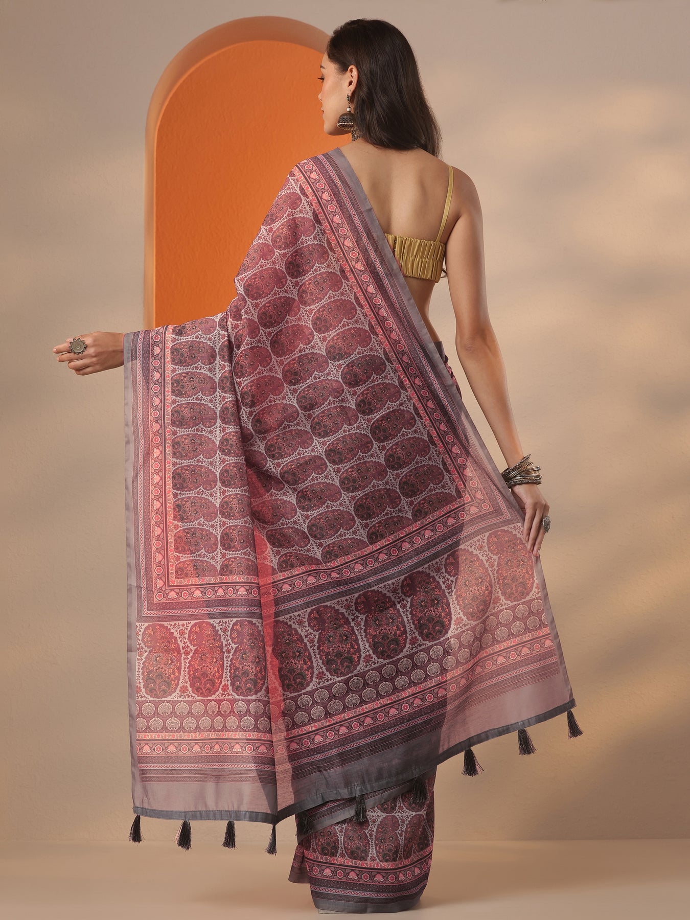 Grey Printed Silk Blend Saree With Unstitched Blouse Piece