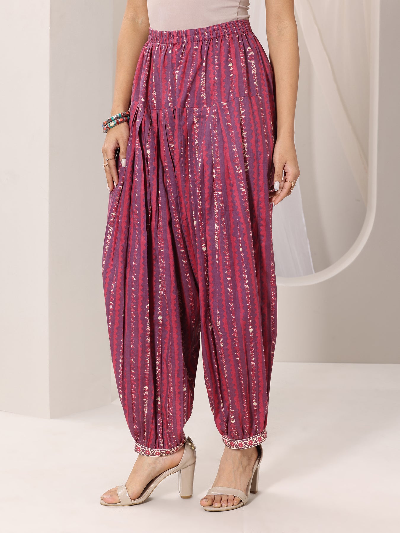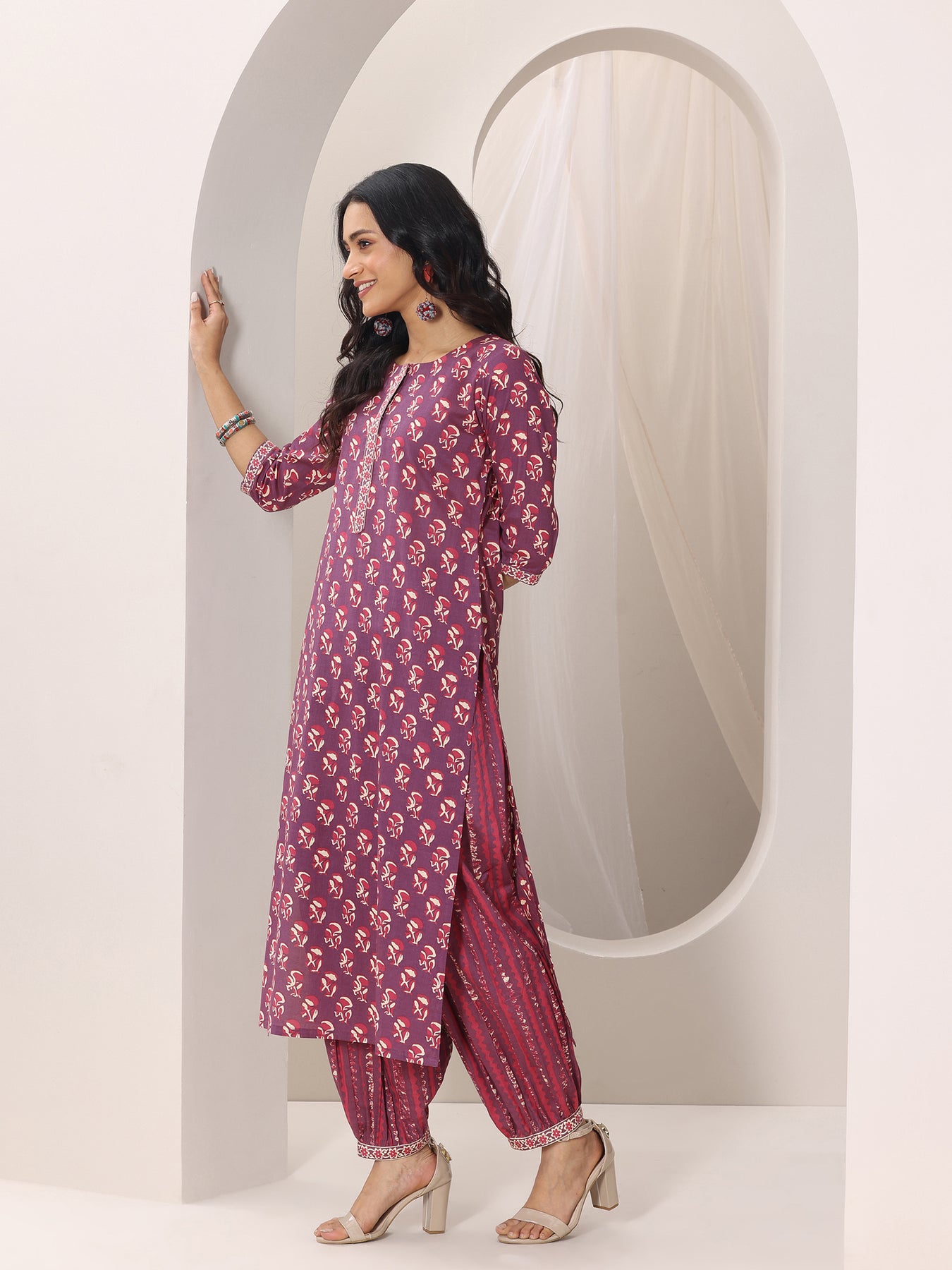 Mauve Printed Cotton Straight Suit Set With Dupatta