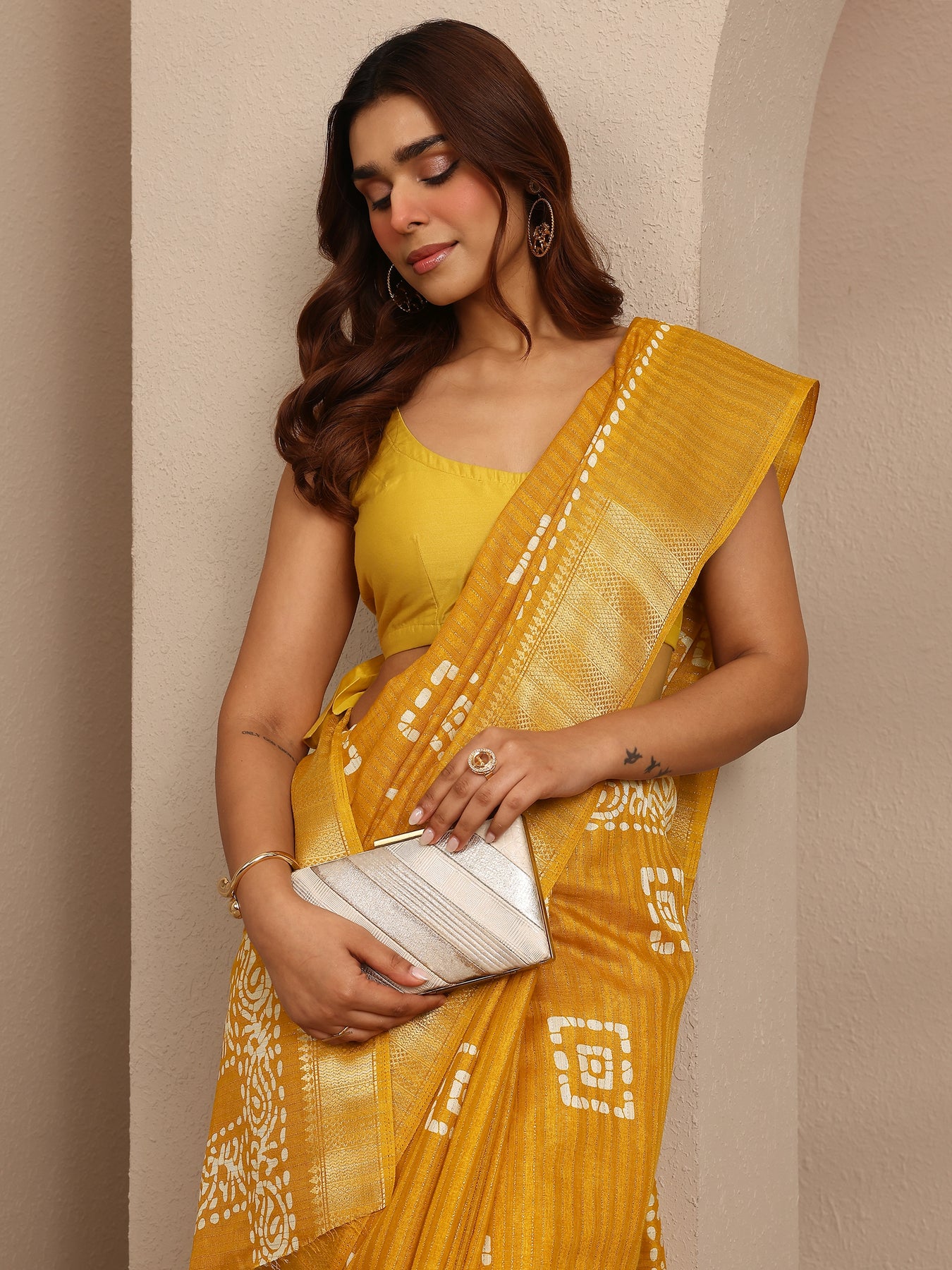 Mustard Geometric Printed Silk Blend Saree With Unstitched Blouse Piece