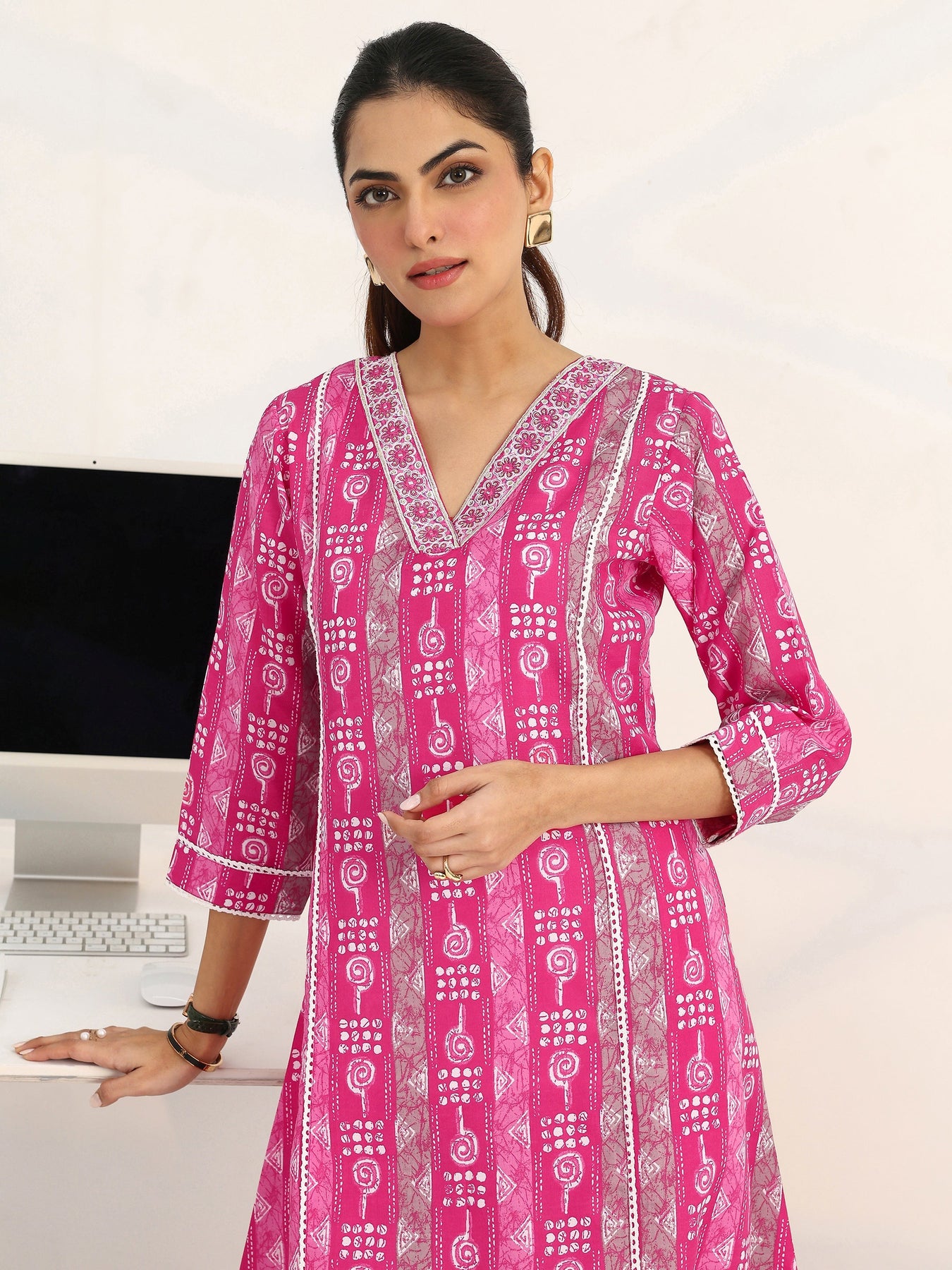 Pink Poise Ethnic Printed Cotton Blend Straight Suit Set